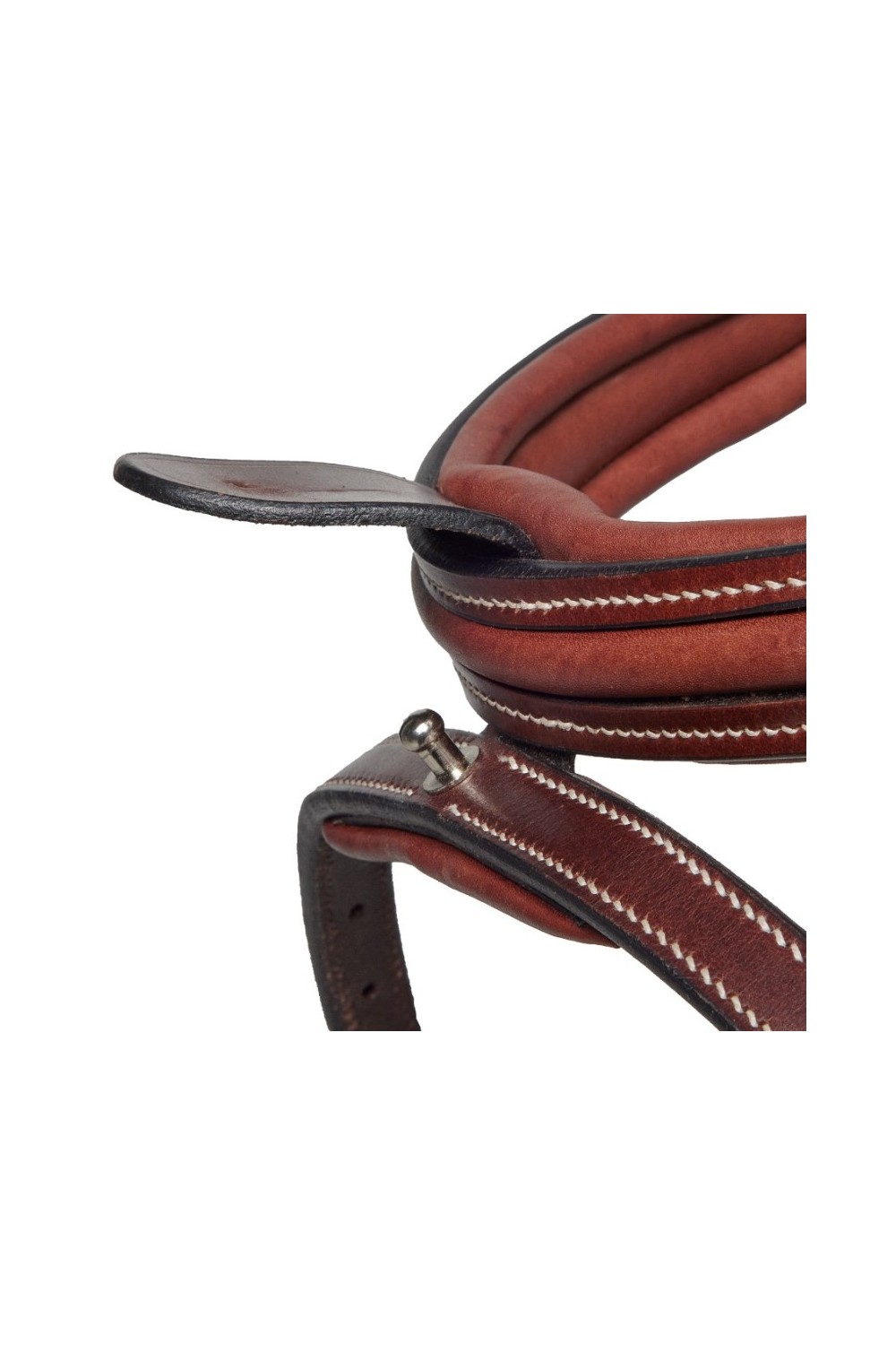 Esta cabezada de alta calidad combina comodidad y funcionalidad para el caballo. Gracias al testero anatómico con un corte en la zona del cuello y una muserola suavemente acolchada, se garantiza la comodidad para el caballo. La muserola con cierrabocas con almohadilla para la barbilla y la correa cierrabocas completamente desmontable permite un doble uso. Fabricada en cuero de alta calidad con cuero encerado alomado en la muserola, la frontalera y el testero, y hebillaje de acero inoxidable, la brida Palmanova convence no sólo por su bonito diseño deportivo, sino también por su durabilidad y robustez. Ideal para jinetes exigentes que buscan lo mejor para su caballo. Características: Testero de forma anatómica con abertura en la zona del cuello - Muserola con cierrabocas y almohadilla para la barbilla - Correa cierraboca extraíble sin dejar rastro - Acolchado suave - Con cuero alomado encerado en la muserola, la frontalera y el testero - Hebillaje de acero inoxidable - Viene con riendas de cinta