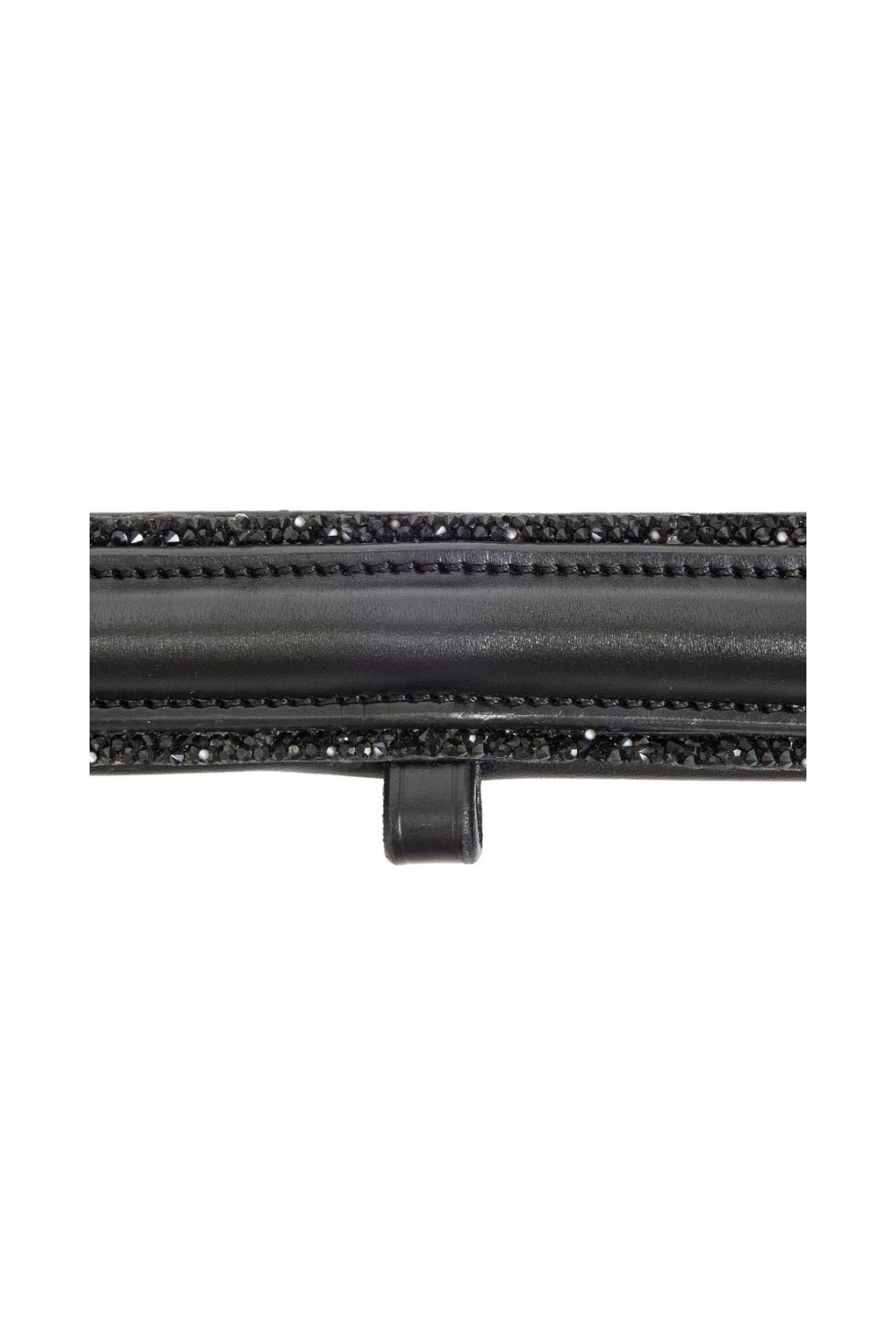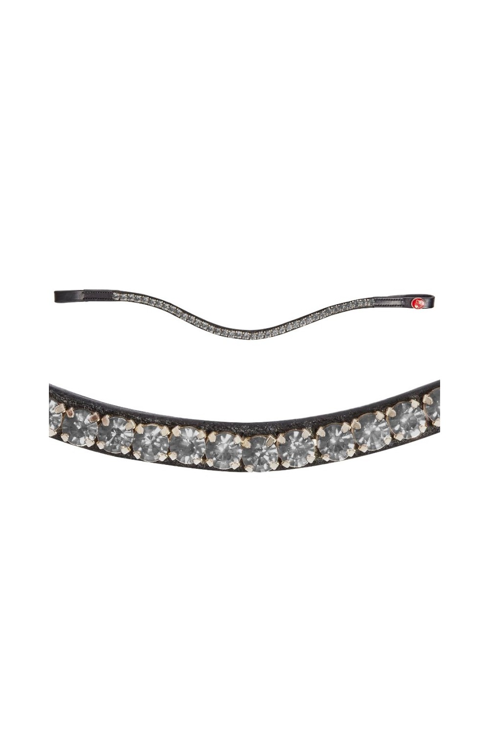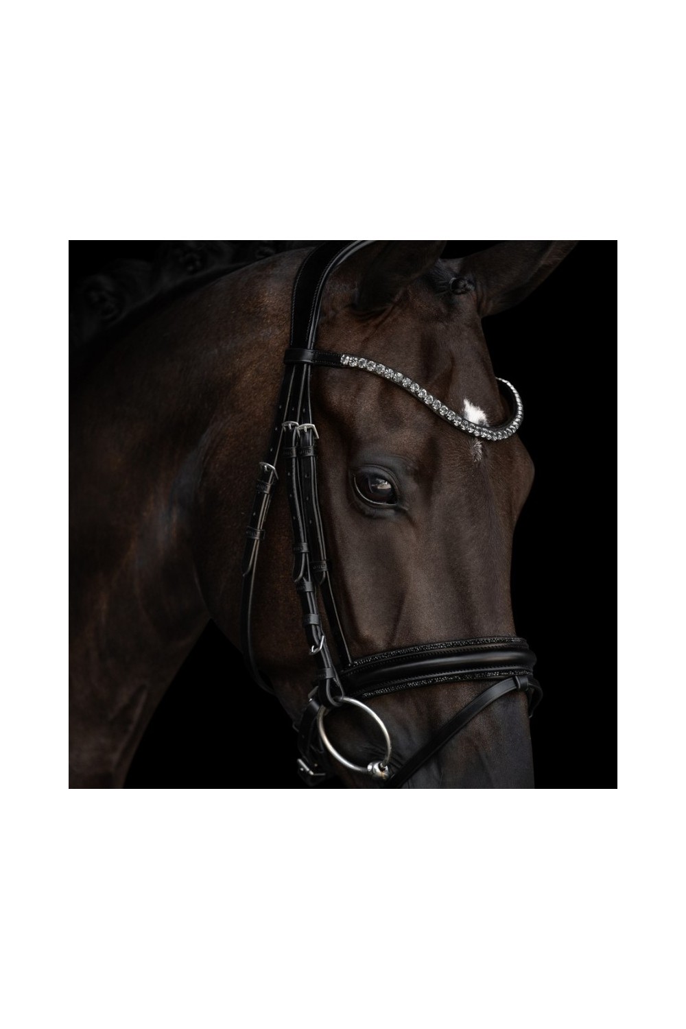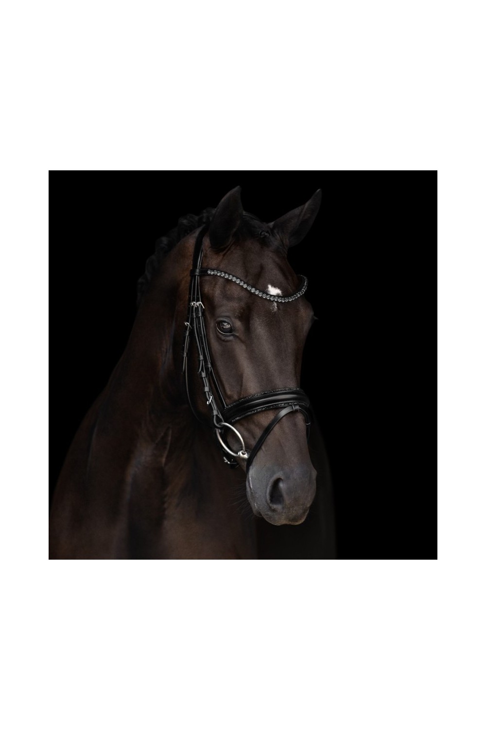 La cabezada Grace siempre tiene una apariencia brillante y está equipada con elementos adaptados a los caballos para una distribución óptima de la presión. El testero de diseño anatómico deja fuera la aurí­cula y está acolchado de forma muy suave. La elegante muserola con suave forro está cortada un poco más ancha y decorada con ribetes de cristal negro brillante. El cierre trasero también está acolchado para evitar puntos de presión. La delgada y curvada frontalera está adornada con cristales montados de 8 mm en color gris claro engarzados en una cadena de alta calidad. Con sus sutiles reflejos brillantes y su comodidad extra, la brida Grace garantiza un aspecto glamuroso. Esta cabezada está hecha de cuero duradero de gran calidad y equipada con hebillaje de acero inoxidable de alta calidad. Cuero de la mejor calidad - Muserola cierrabocas que abrocha en ambos lados, decorada con ribetes de cristal brillante negro - Testero de diseño anatómico con acolchado suave para mayor comodidad y menos presión - Frontalera curva con cristales de 8 mm en gris - Hebillas cromadas - Viene con riendas de cinta