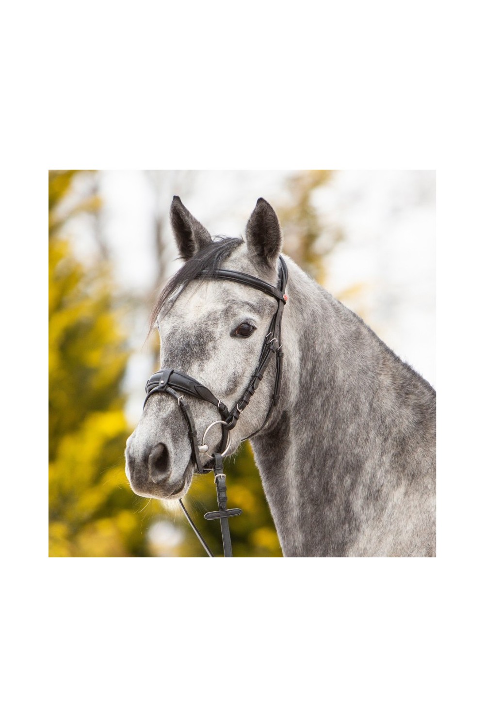 Kieffer Ultrasoft® Unah está diseñada pensando en la comodidad de los caballos y combina confort y flexibilidad porque está realizada en cuero extremadamente suave. Está equipada con el testero Comfort de Kieffer que presenta un diseño recortado en la oreja. Para aumentar aún más la comodidad para tu caballo, el testero y la muserola están acolchados con cuero súper suave. La muserola tiene hebillas adicionales en el lado izquierdo y derecho que permiten un ajuste perfecto. La brida se puede utilizar sin cierrabocas, que se puede quitar fácilmente. De cuero extremadamente suave - Testero Comfort suavemente acolchado con diseño recortado en la oreja - Muserola ajustable con hebillas en ambos lados - La muserola se puede ajustar hasta 2,5 cm en ambos lados - Muserola con cierrabocas con correa completamente extraíble - Frontalera de cuero elevada con corte recto - Hebillas cromadas - Viene con riendas de cinta