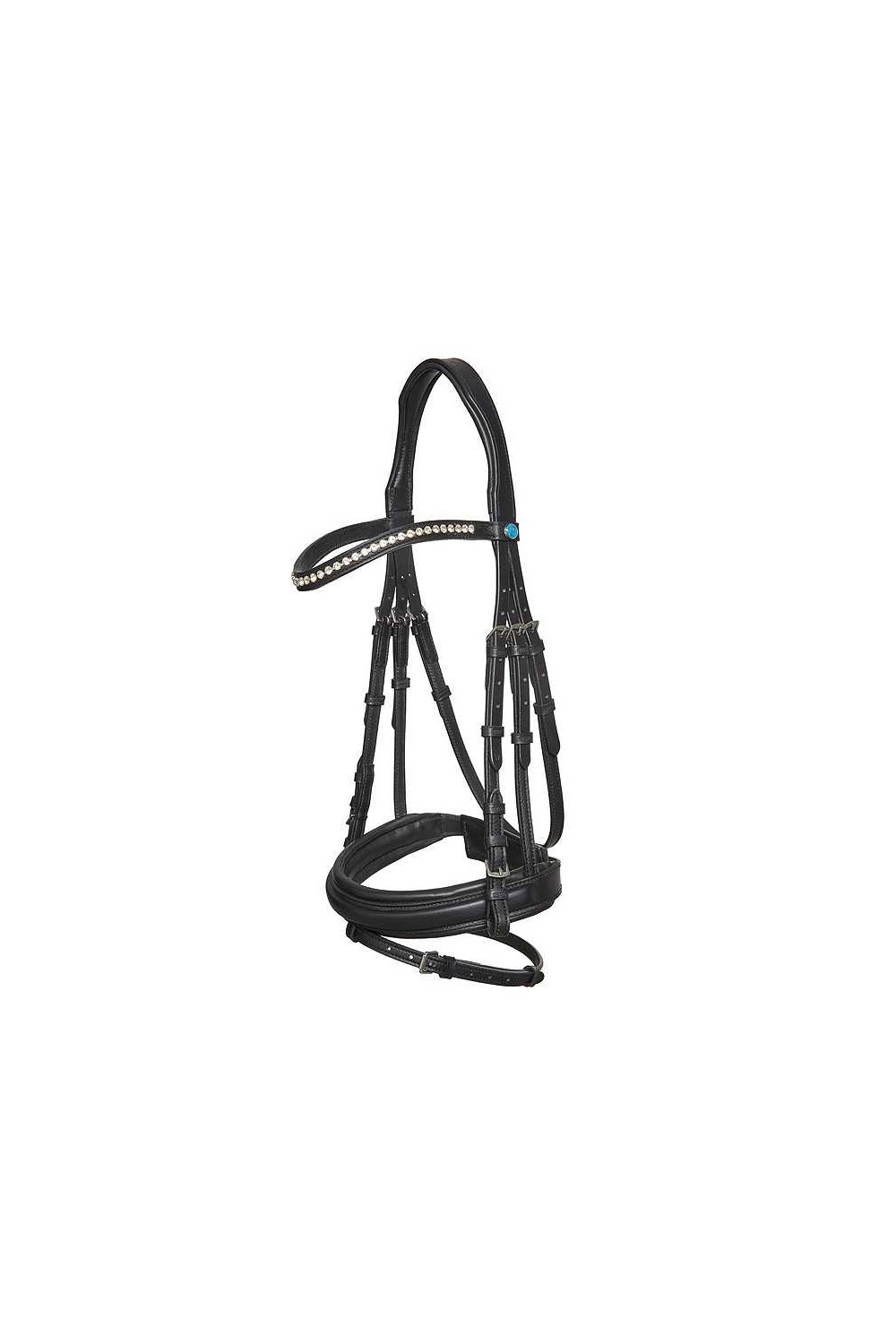 Bonita cabezada inglesa con frontalera curvada de brillantes.