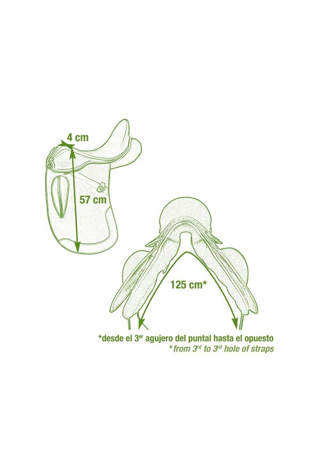• Sistema de cinchado: Sistema en V. Cincha doma corta 50-85 cm