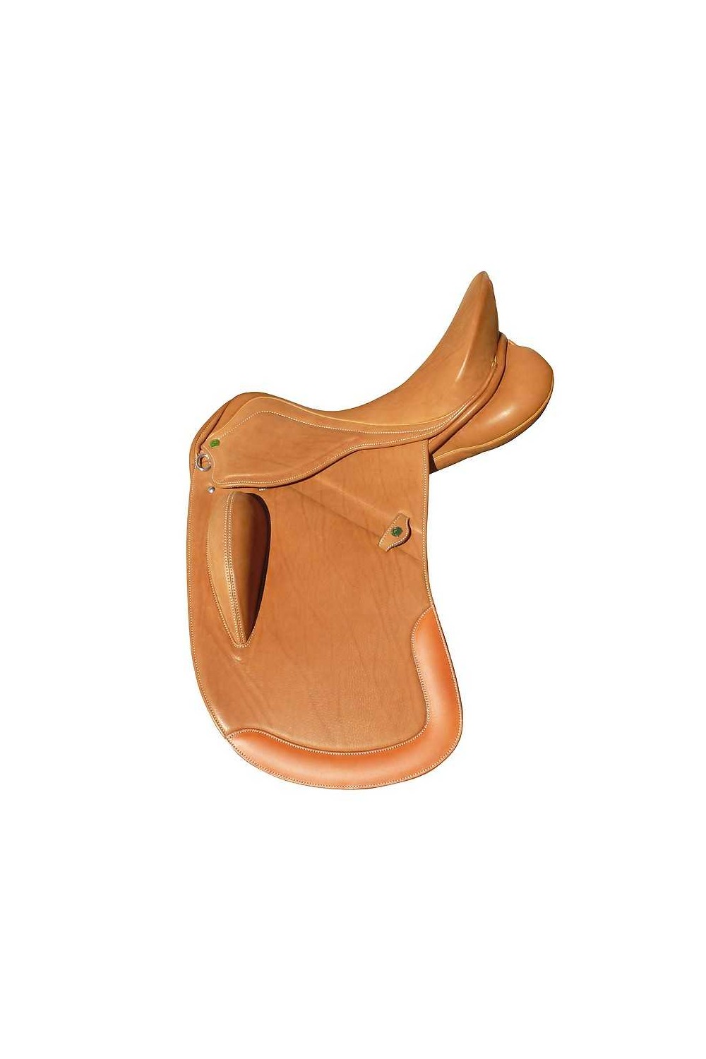Fabricada en cuero de primera calidad antideslizante. Su rodillera es elevada y apoya en el muslo, lo que da más libertad a la pierna. Con bastes amplios con buena cuña para un mejor apoyo y faldón y faldoncillo acolchados para un mayor confort. Canal para el paso de la ación de estribo. Cuero de refuerzo para alargar la vida del faldón.