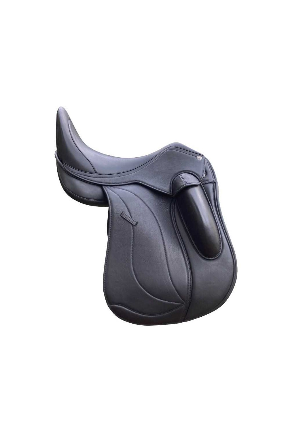 Silla de montar de doma de asiento profundo realizada en cuero doble vacuno de gran calidad. Con 5 medidas de puentes intercambiables (1 incorporado a la silla), para adaptarla a la cruz de tu caballo.
