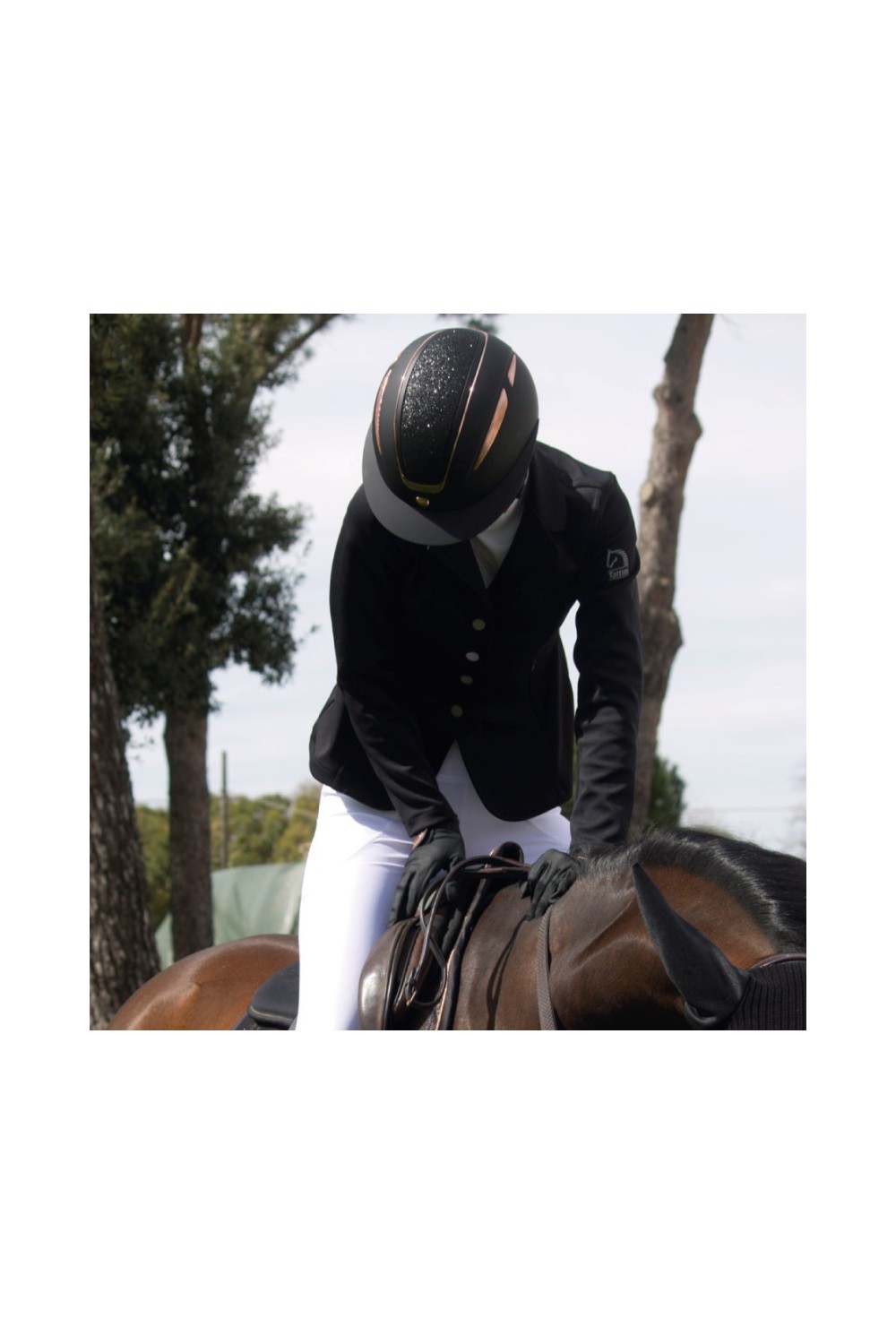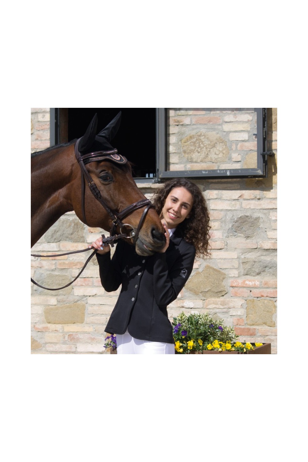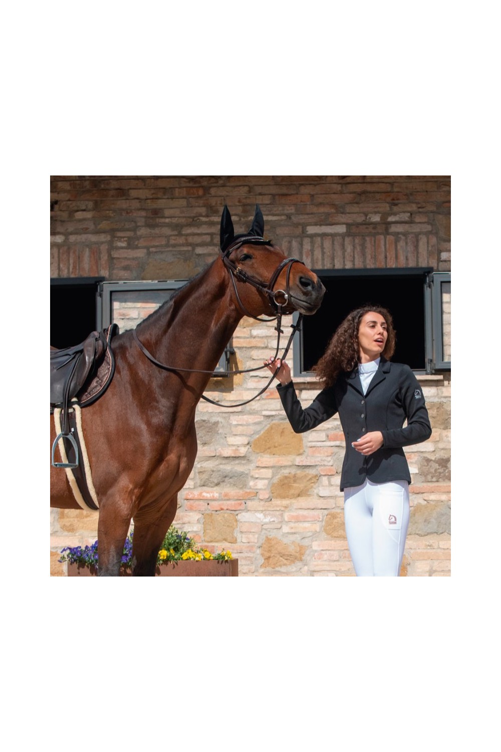 Chaqueta de competición realizada en tejido técnico de punto, suave, elástico y súper cómodo. De lí­nea entallada y ajustada. Con doble bolsillo frontal con cremallera oculta y cortes traseros.