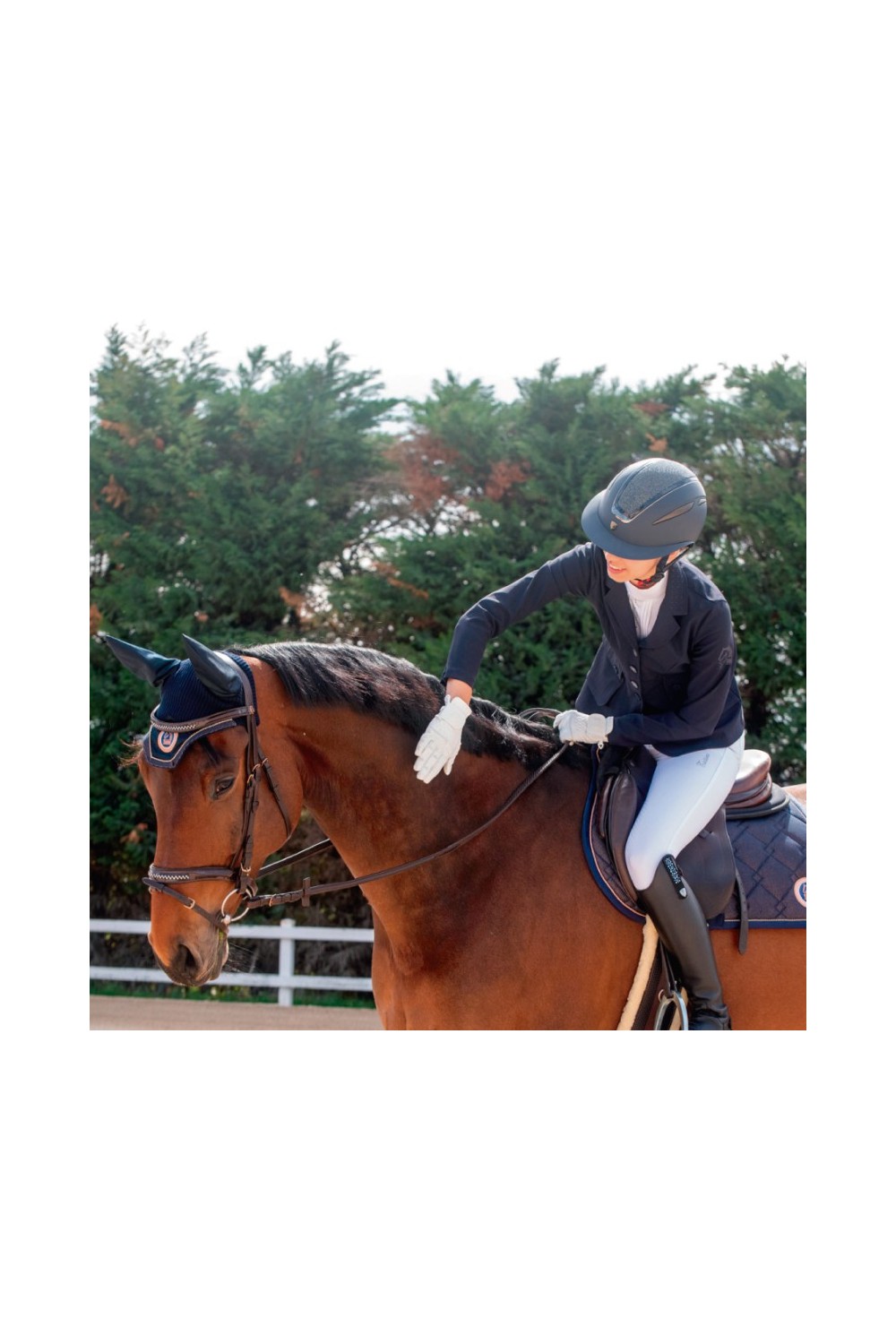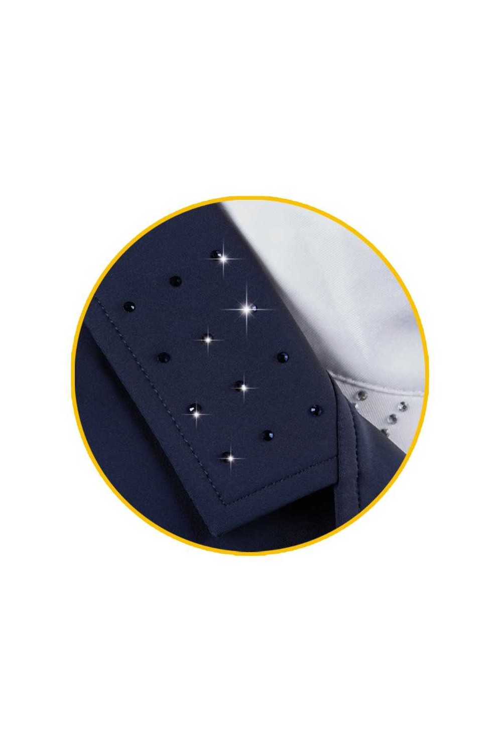 Con adornos de strass tono sobre tono en el cuello y en la parte trasera.