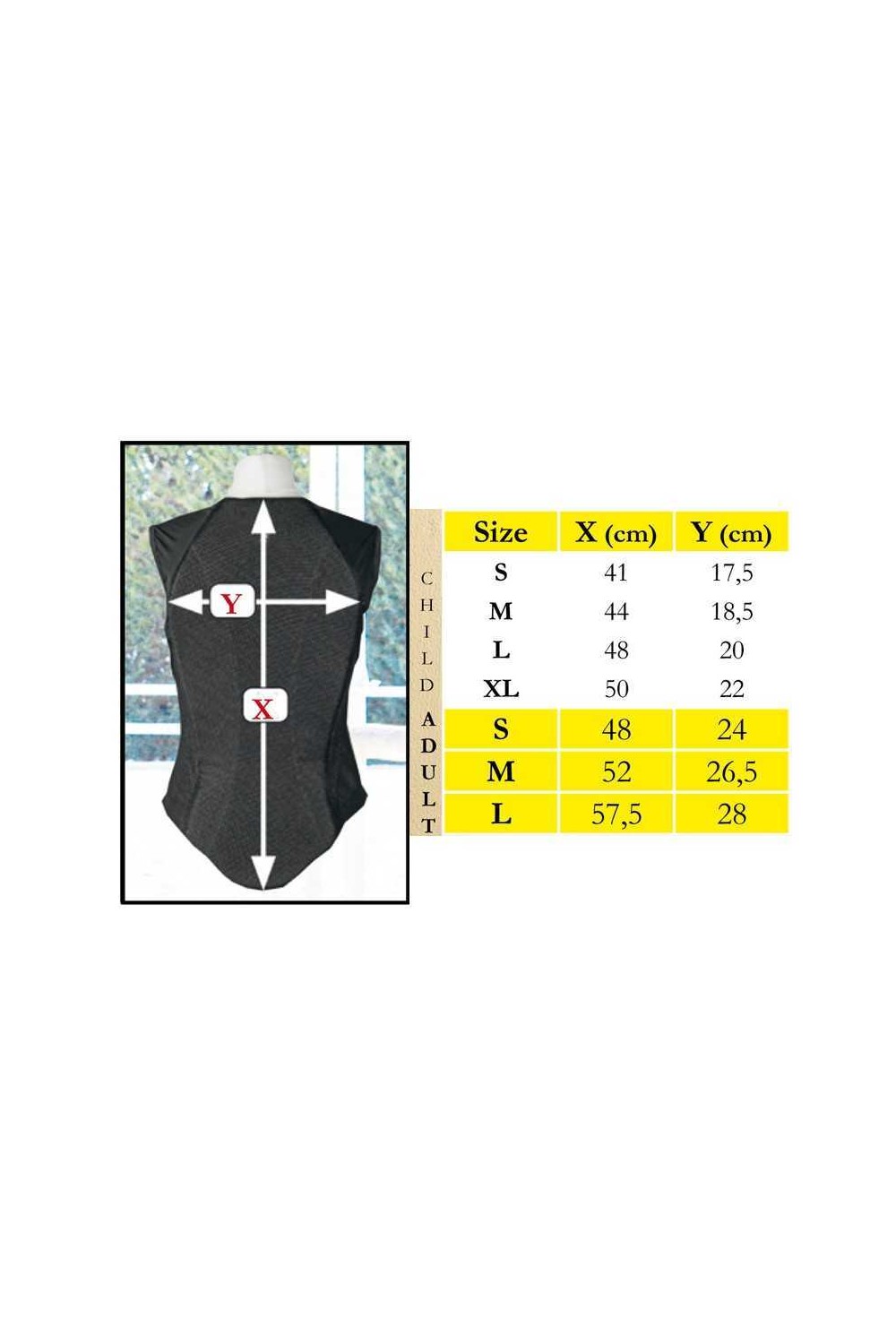 Transpirable y extensible en los laterales y los hombros, está equipado con acolchado para proteger todo el pecho, cierre de cremallera frontal y correas de ajuste en la cintura. Fabricado en poliéster y elastam, está acolchado con espuma de nitrilo y PVC multicapa, para garantizar una excelente protección de la espalda sin dejar de ser flexible y ligera y garantizando una total libertad de movimientos. Aprobado según EN1621 Nivel 2.