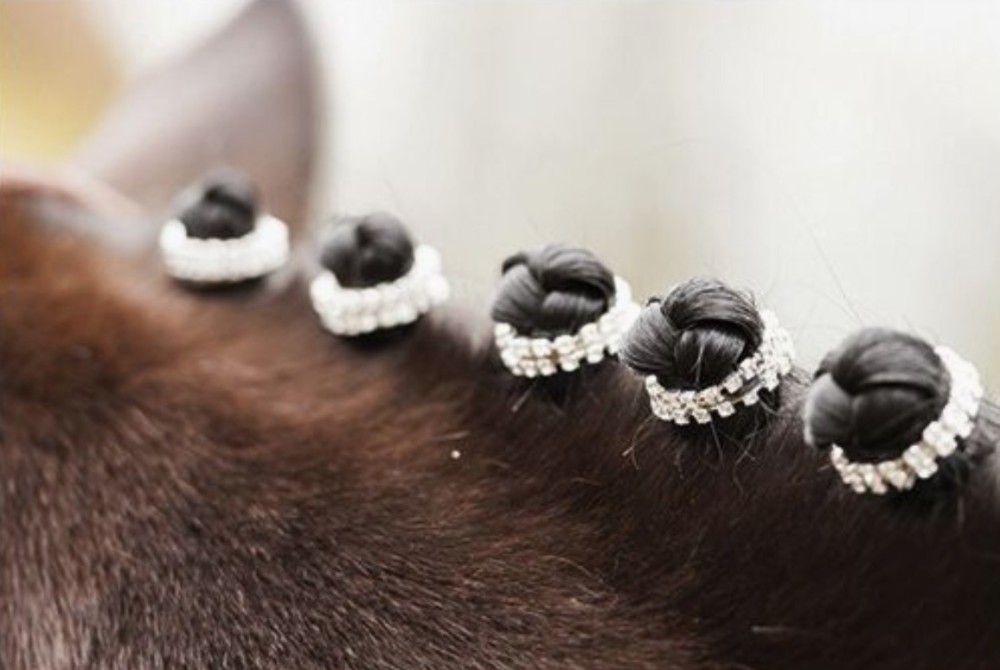 Gomas de trenzar con adorno para crines. Están cubiertas por piedras preciosas.