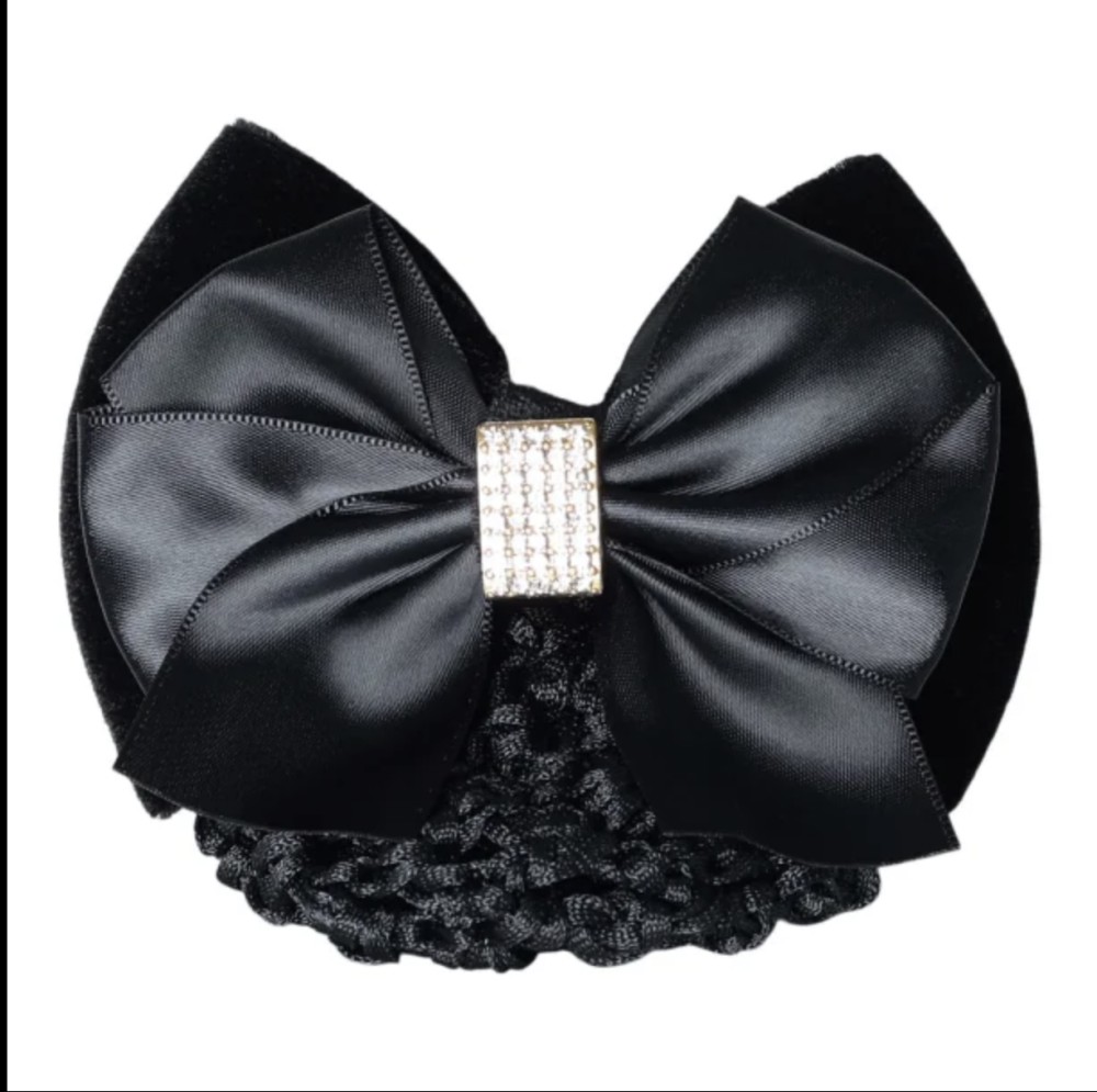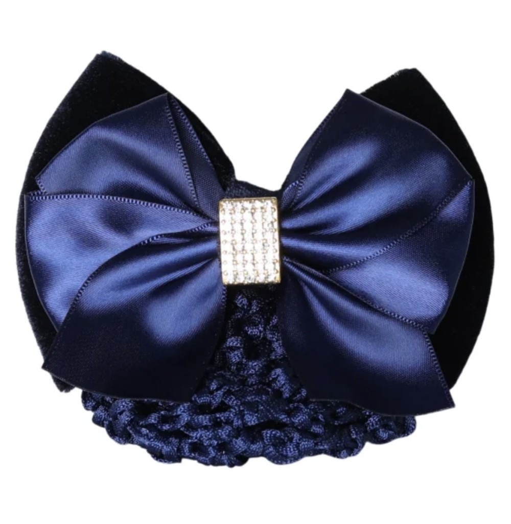 Redecilla con lazo, imprescindible para la competición. Decorada en una tela brillante un obsequio en forma de diamante con brillos.