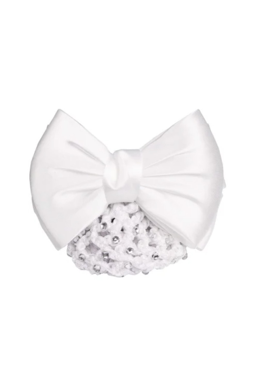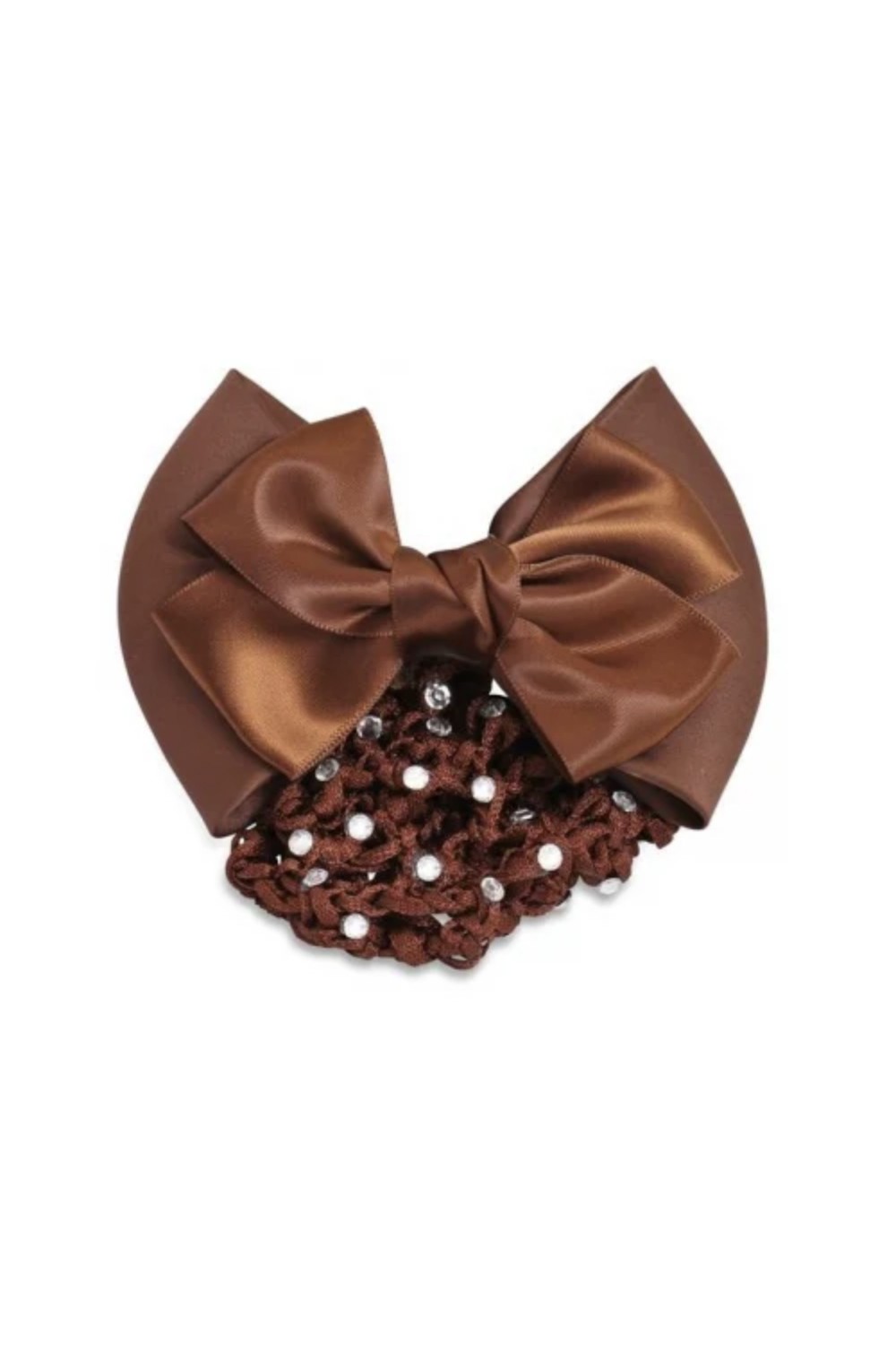 Lazo para el cabello, hecho de un tejido de intenso brillo, una textura suave y sedosa, con una red para el pelo, decorada con brillantes cristales. Incluye en una bolsa de cristales.