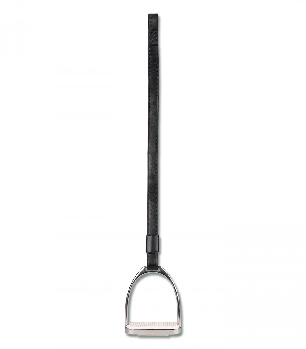 Acciones para estribos de lazo, hechas de material sintético de fácil limpieza con núcleo de nailon. Sólo hay una correa entre la pierna del jinete y el faldoncillo. Para cambiar con toda facilidad y rapidez la longitud de los estribos.