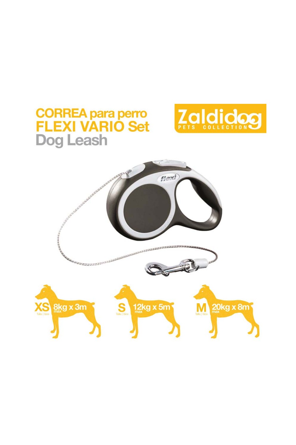 Talla M: Correa de 8 metros de largo, recomendable para perros de hasta un máximo de 20 Kg.