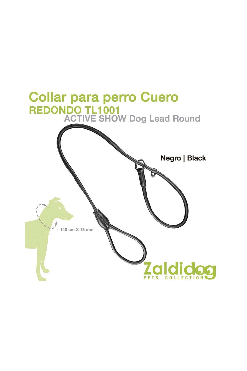 PERRO CORREA CUERO REDONDO TL1001 140cm X 13mm NEGRO