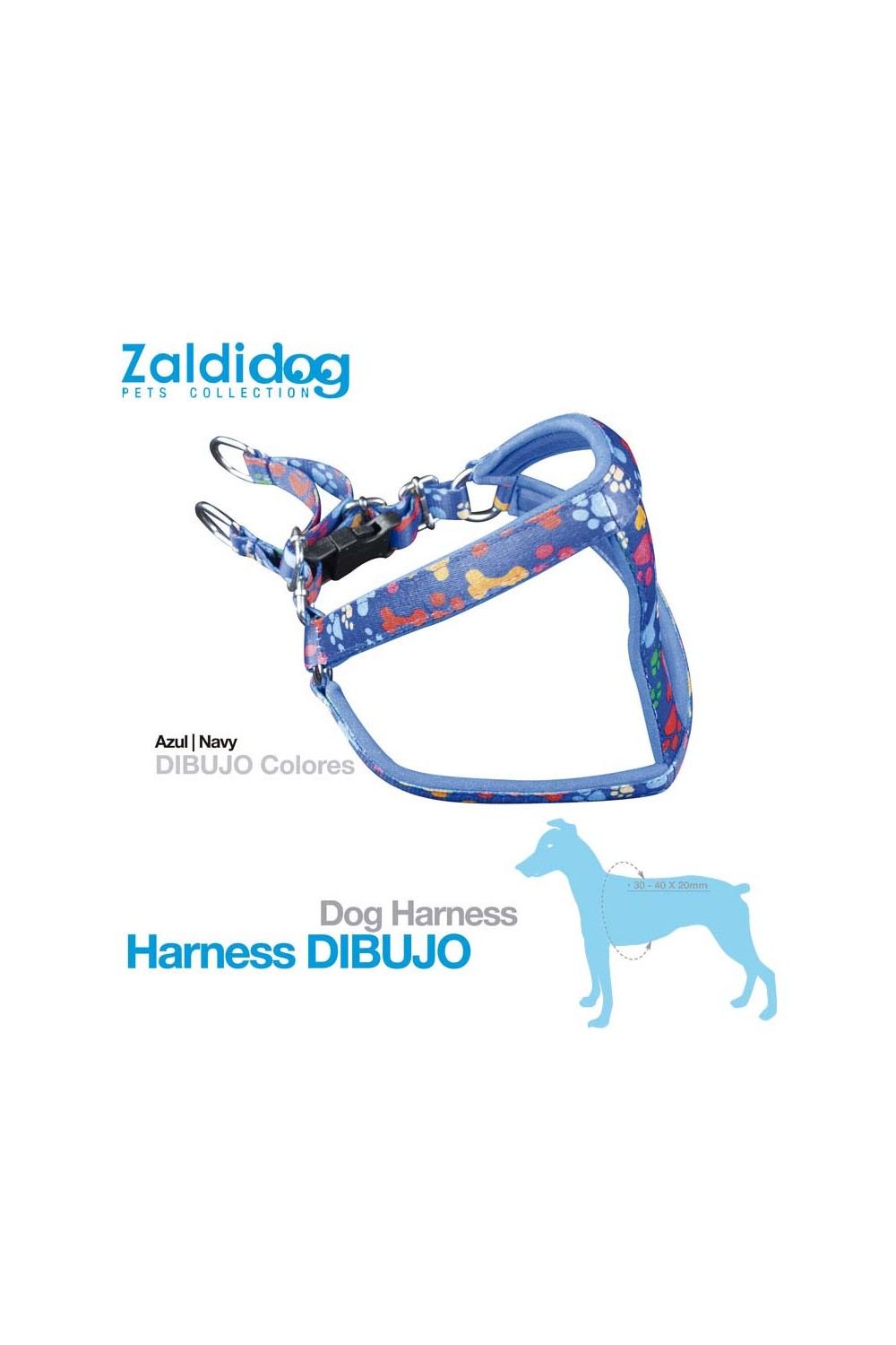 PERRO HARNESS DIBUJO COLORES 30-40cm X 20mm AZUL