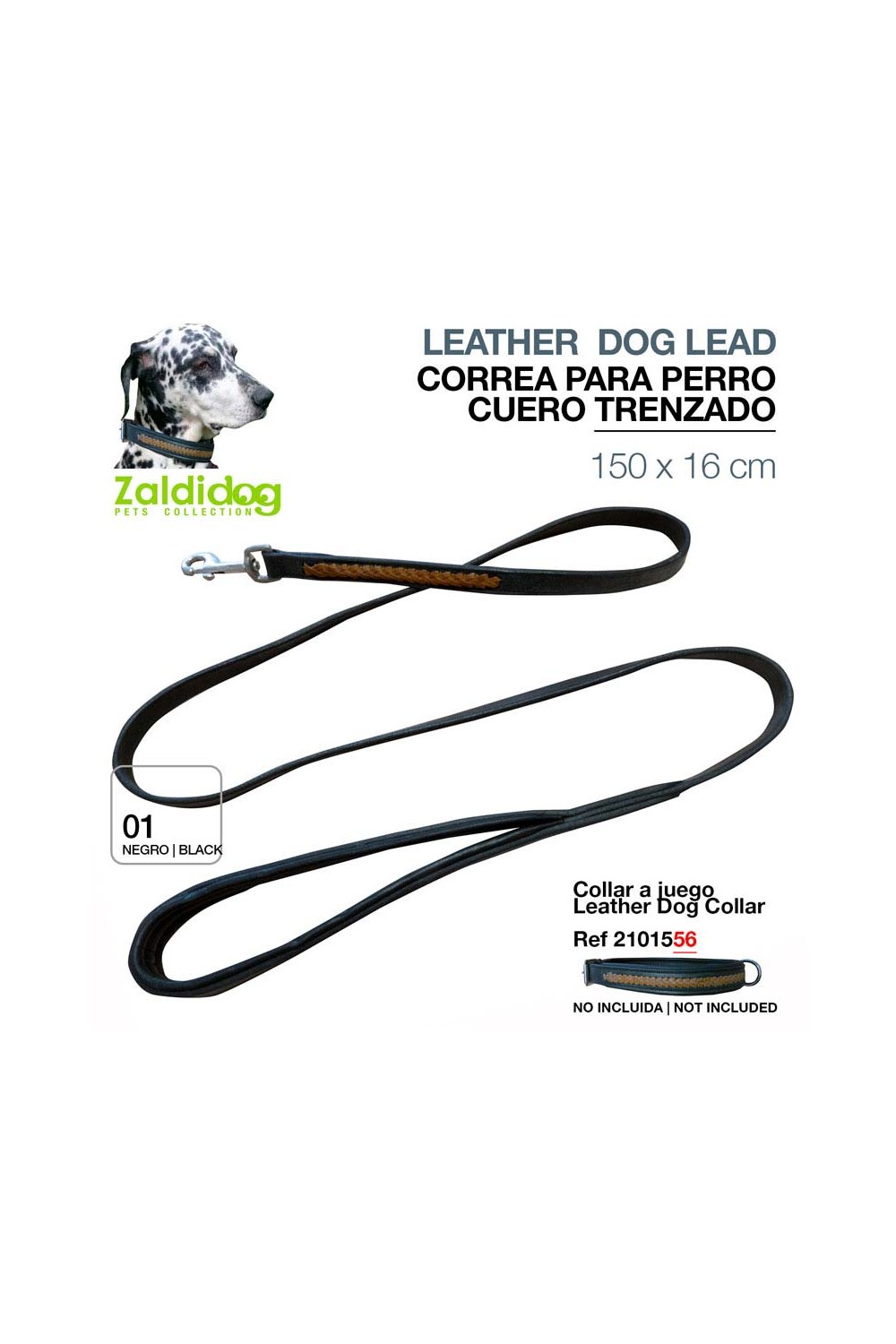 PERRO CORREA CUERO TRENZADO 150cm X 16mm DL010 NEGRO