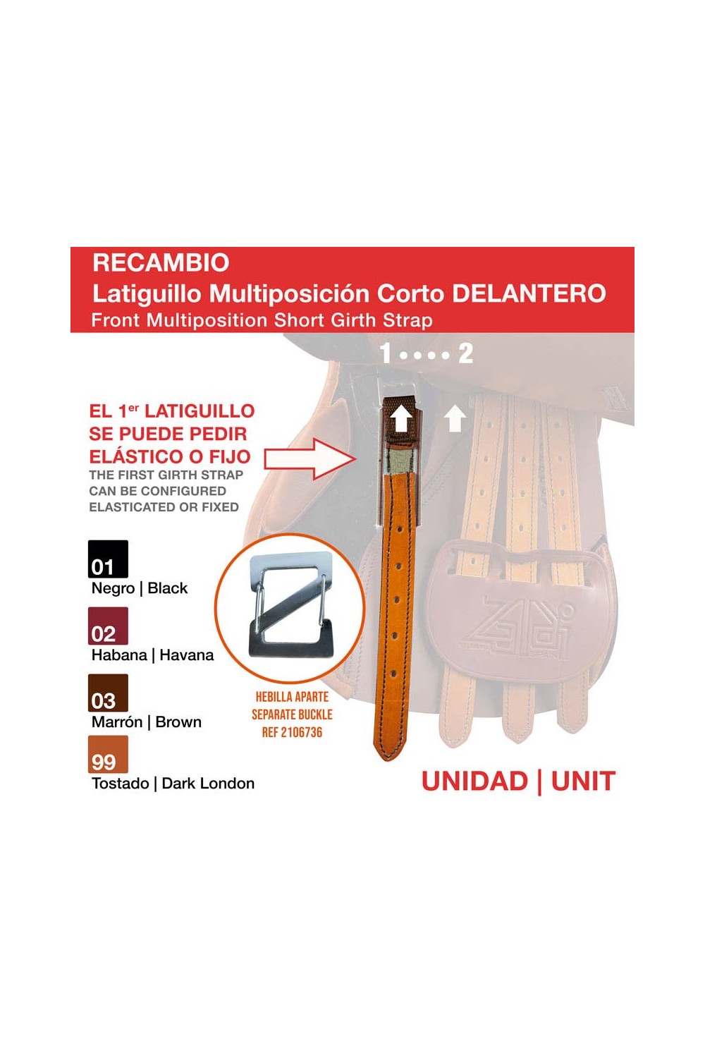 Se vende por unidades individuales para adelante (ref. 0100142); atrás las sillas de salto o uso general llevan 3 latiguillos cortos de serie.