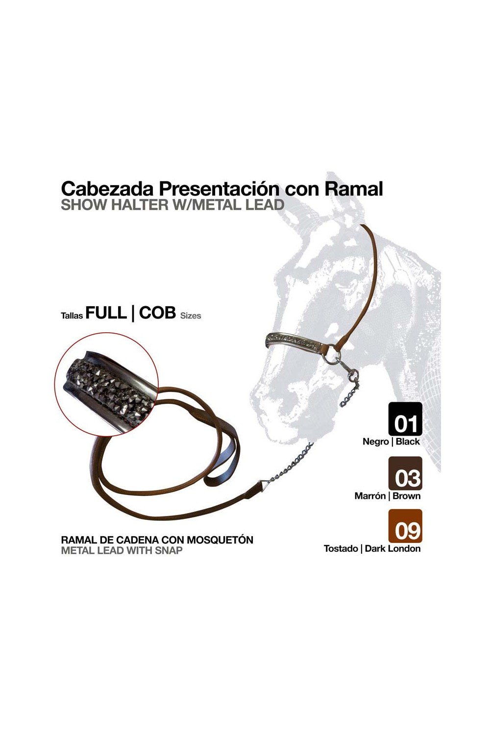 El ramal en total mide aproximadamente 1.95 metros (1.30 m la parte de cuero incluyendo el asa y 65 cm la cadena).