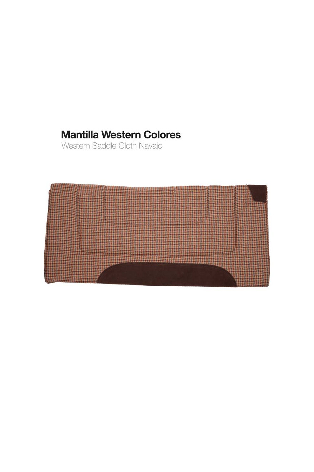 Mantilla western fabricada en jarapa en la parte superior y borreguillo sintético en la parte inferior.