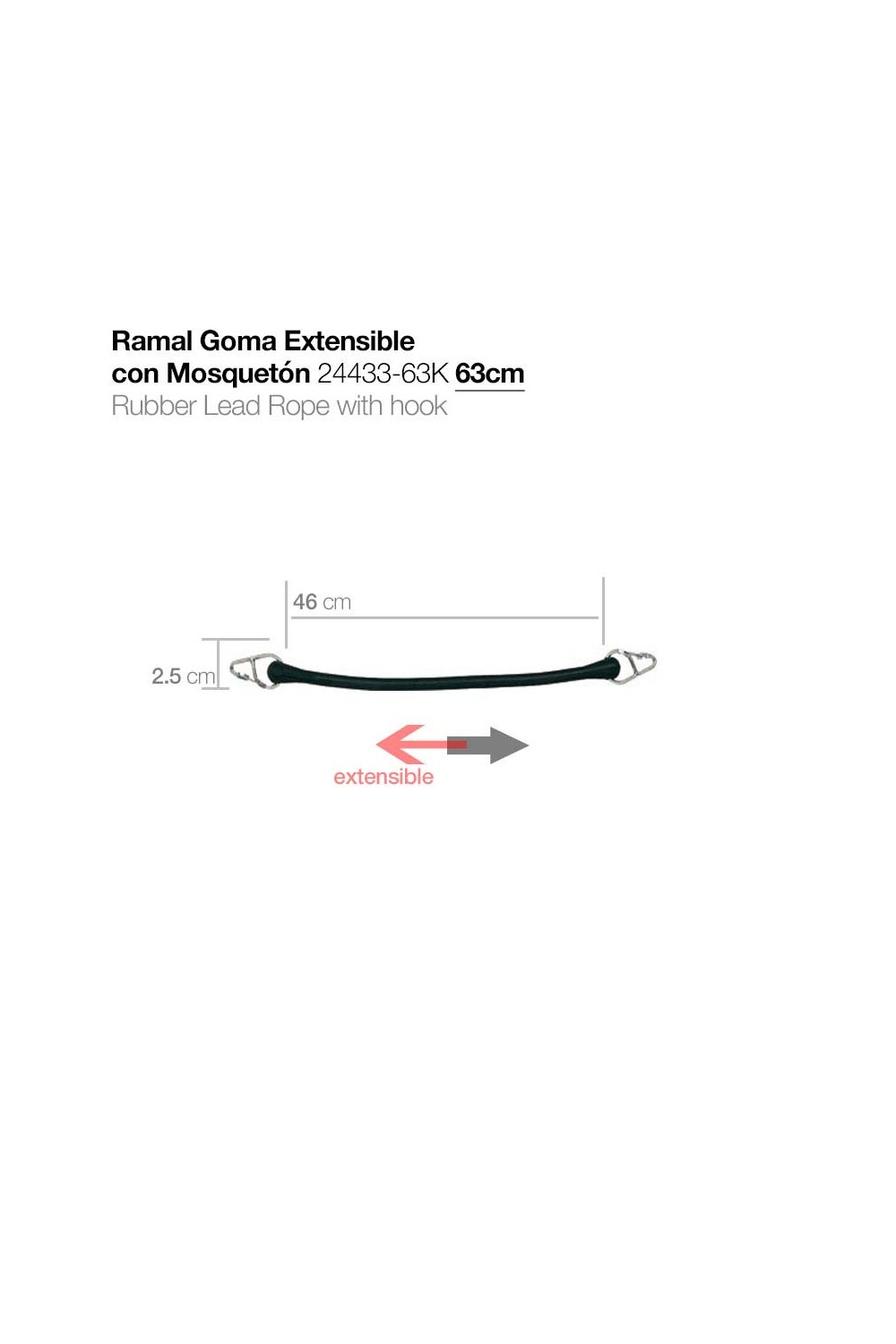 RAMAL GOMA EXTENSIBLE CON MOSQUETÓN 24433-63K 63cm