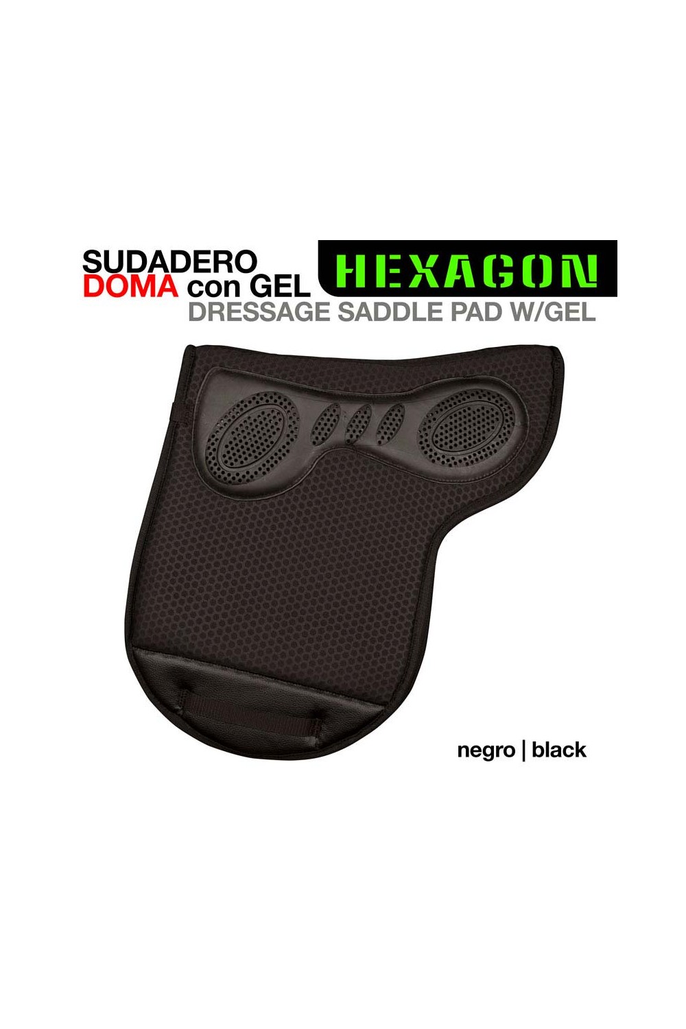 Nueva celda con estudiado diseño en forma de hexágono, que conforma un tejido de última generación en forma de panal de abeja que permite una perfecta transpiración de la espalda del caballo, reduciendo la acumulación de calor y la humedad debajo de la silla.