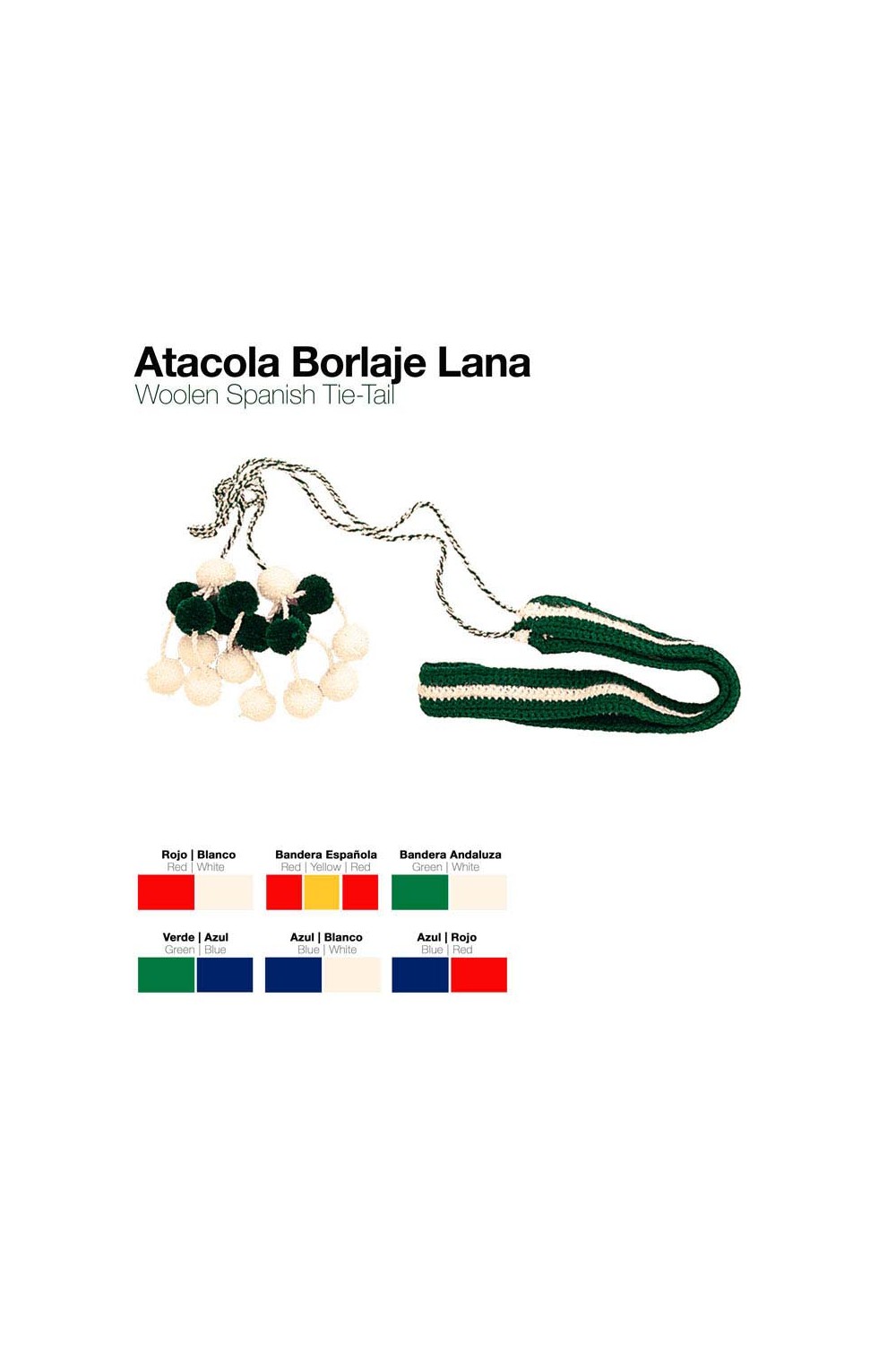 Tira de 4 cm. de ancho y 70 cm. de larga terminada, en cada punta, en un conjunto de 9 borlas.