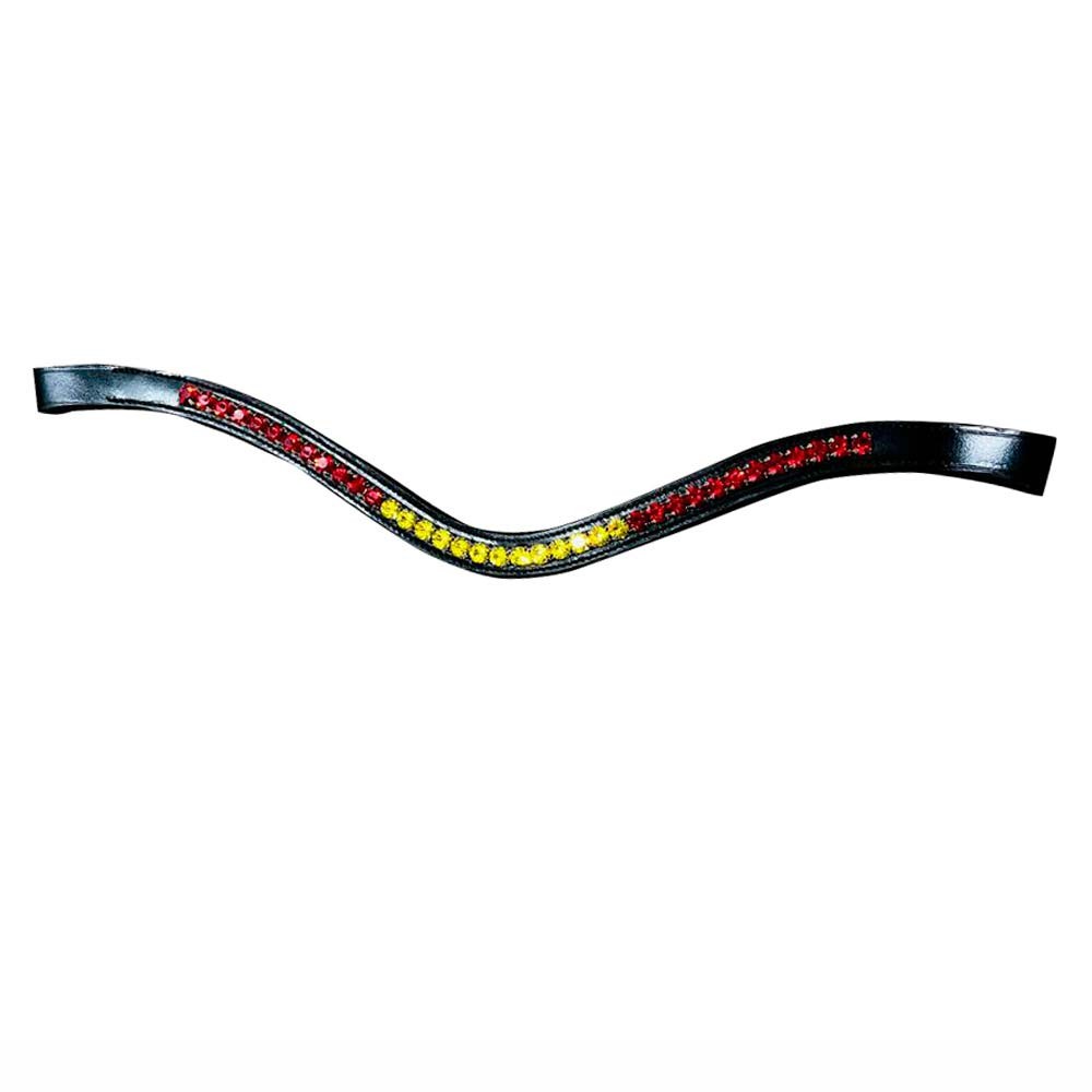 Frontalera curvada con una combinación de cristales grandes en rojo/amarillo/rojo representando la bandera de España.