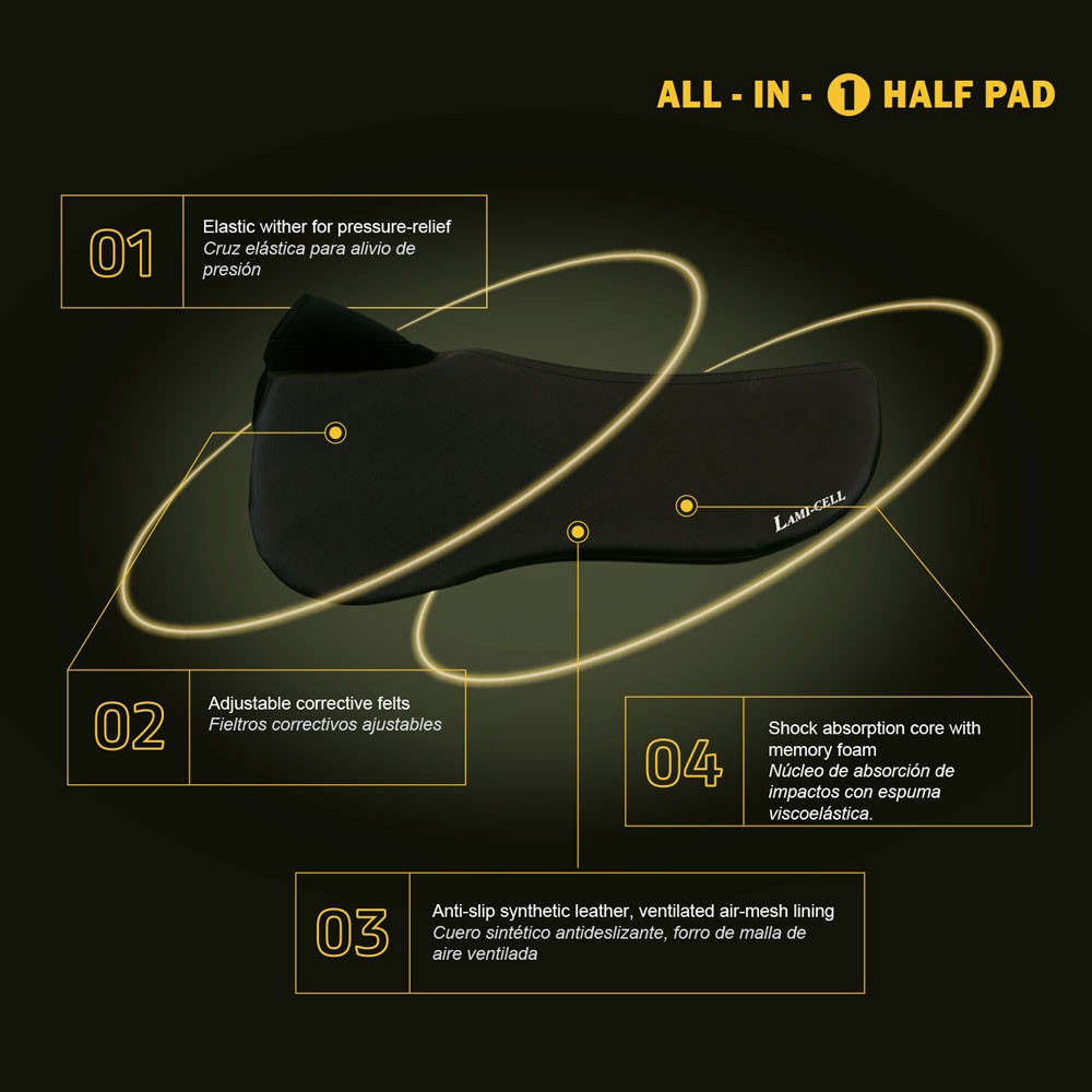 El innovador salvacruces ALL-IN-1 de Lami-Cell proporciona una experiencia de equitación de primera calidad, combinando antideslizamiento y absorción de impactos.