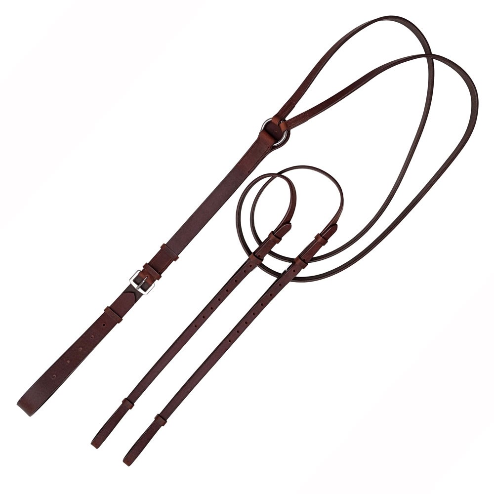 Riendas de dar cuerda con tres puntos de sujeción para estabilizar la silla y controlar el movimiento de la cabeza del caballo.