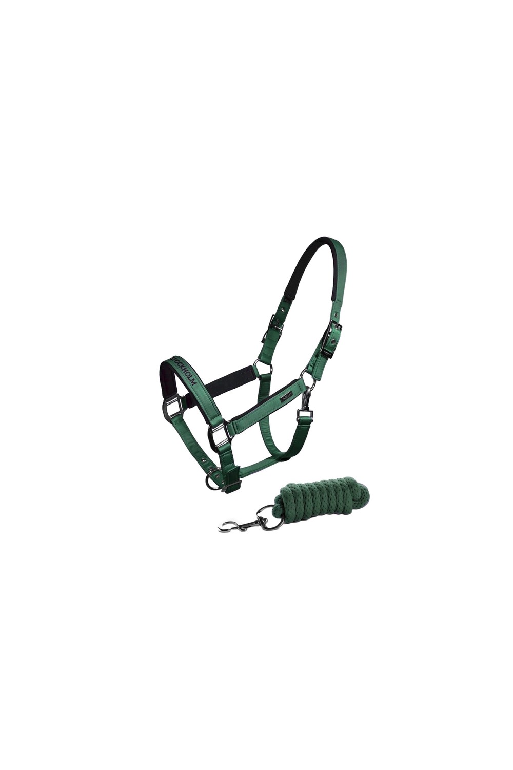 Esta fascinante cabezada color verde militar está diseñada con una combinación de poliéster con forro neopreno en su interior hará un acabado confortable para el caballo. Logotipo adornado en la parte frontal de la nariz y cromado en letras negras. Viene con su ramal incluido en su mismo color y lo puedes combinar con otras piezas de la colección Sycamore.