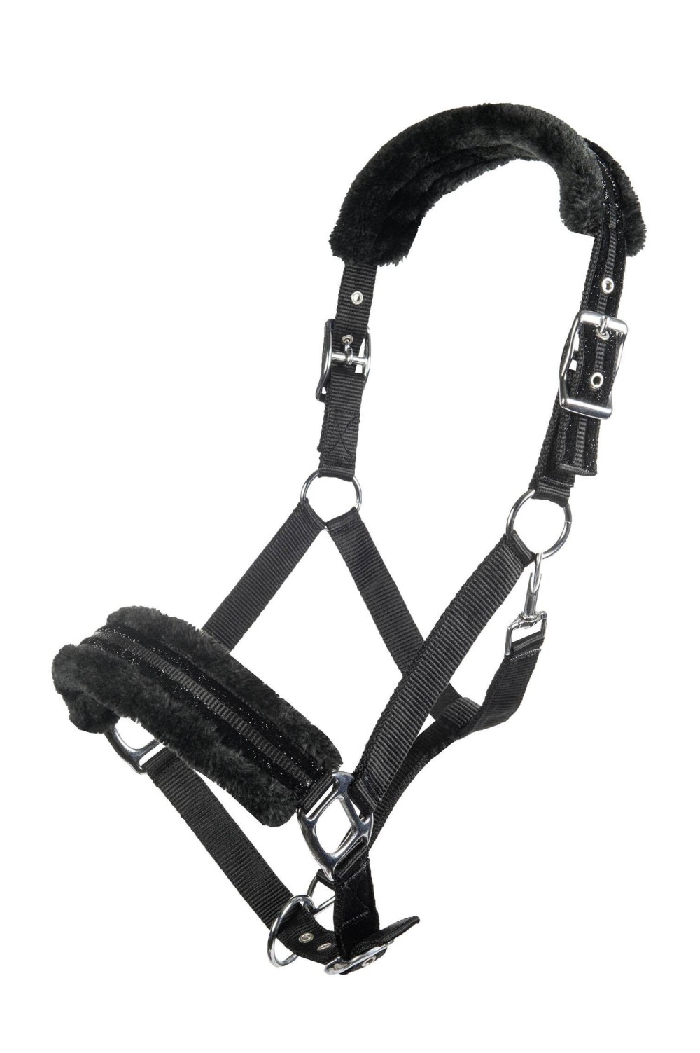 CABEZADA CUADRA DE NYLON CON GLITTER Y BORREGO HKM
