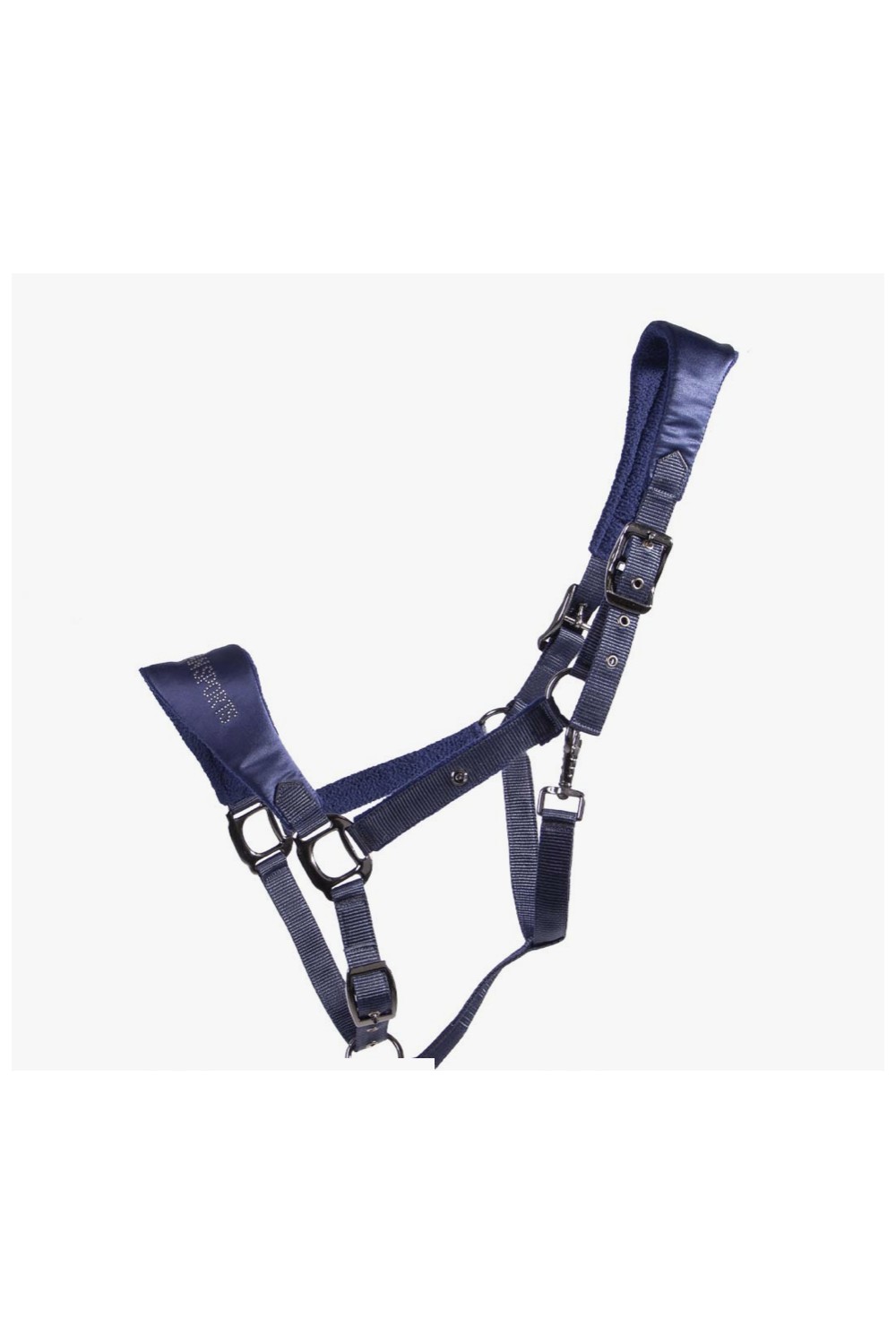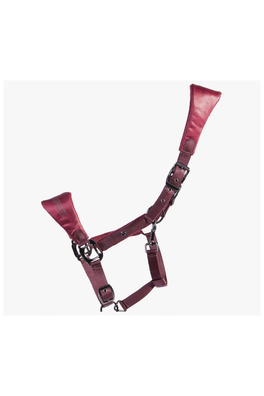 Cabezada estilosa de la colección Gloss. Viene equipada de un acolchado suave en la nuca y la muserola. Tiene bordado en pedrería"Equestrian Sports" en la zona delantera. La zona de la muserola y montante son totalmente ajustables.