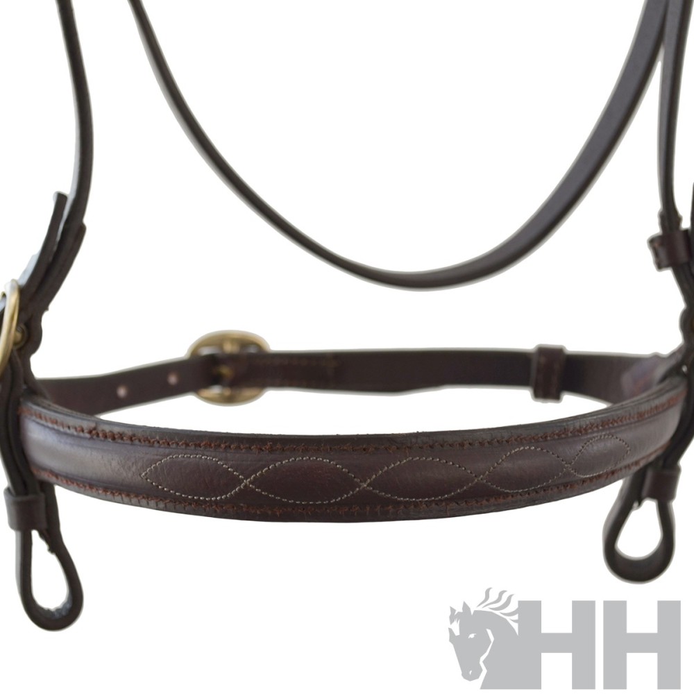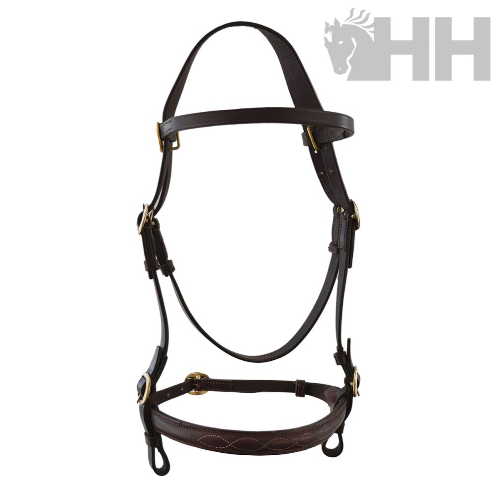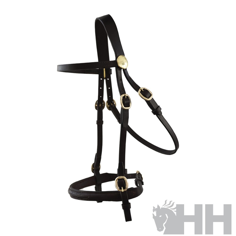 Cabezada inglesa hh tessa alomada hebillas doradas sin cierrabocas riendas lisas