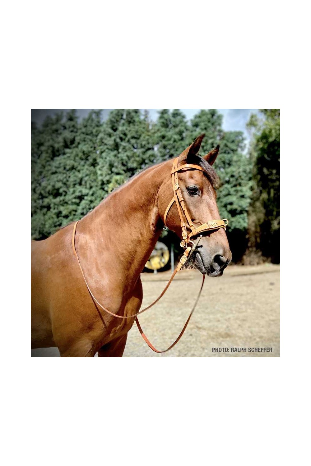 Cabezada de entrenamiento que se puede utilizar como cabezada bitless. Posibilidad de colocar francaletes si se desea utilizar filete o bocado.