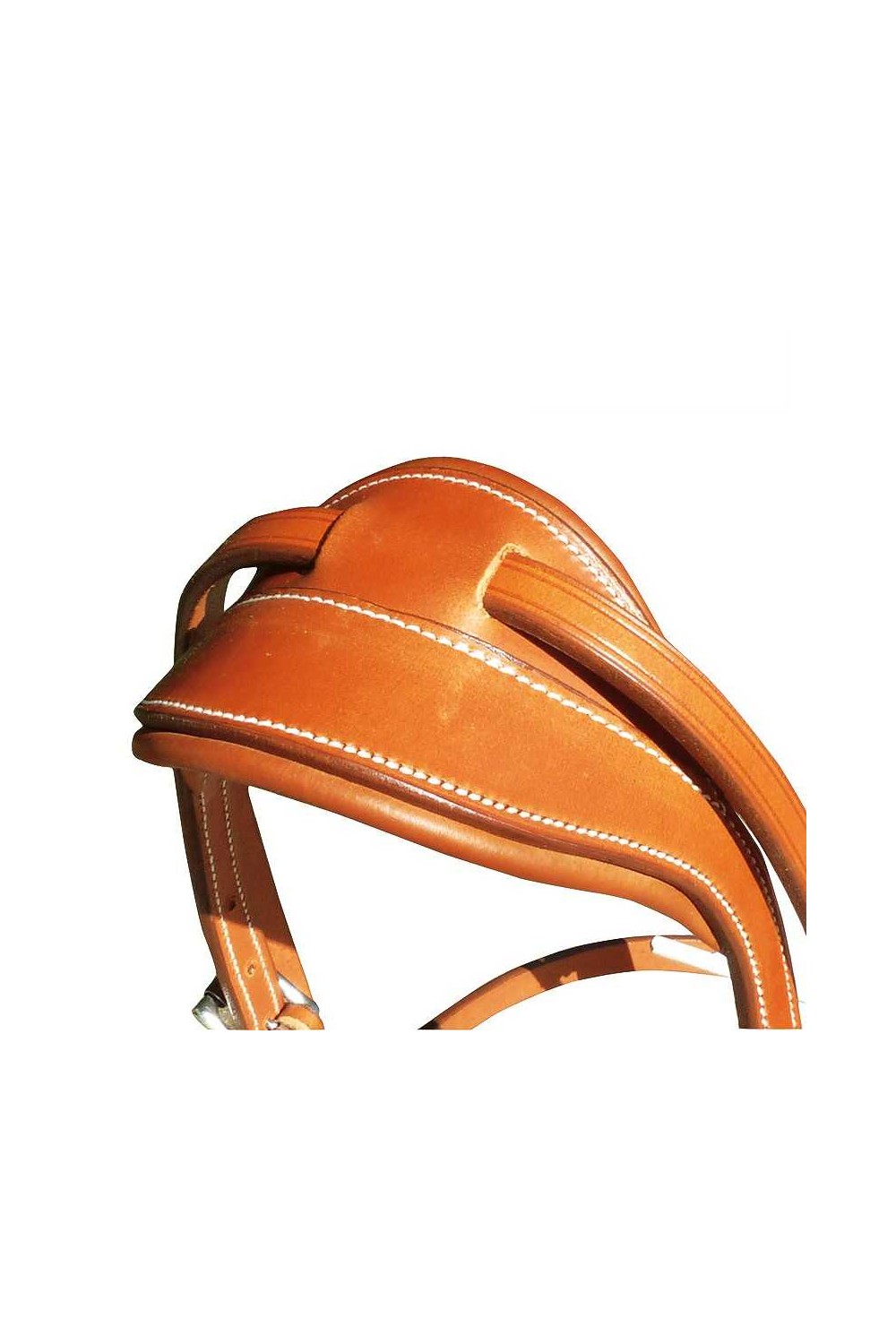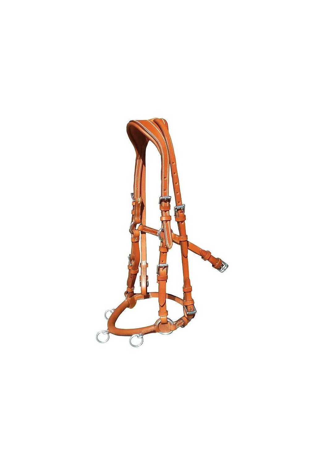 La cabezada modelo Carolina para doma con montante, es una cabezada modelo bitless de trabajo que tiene la posibilidad de colocar francaletes si se desea utilizar filete o bocado.