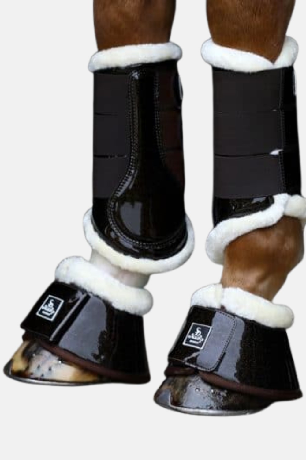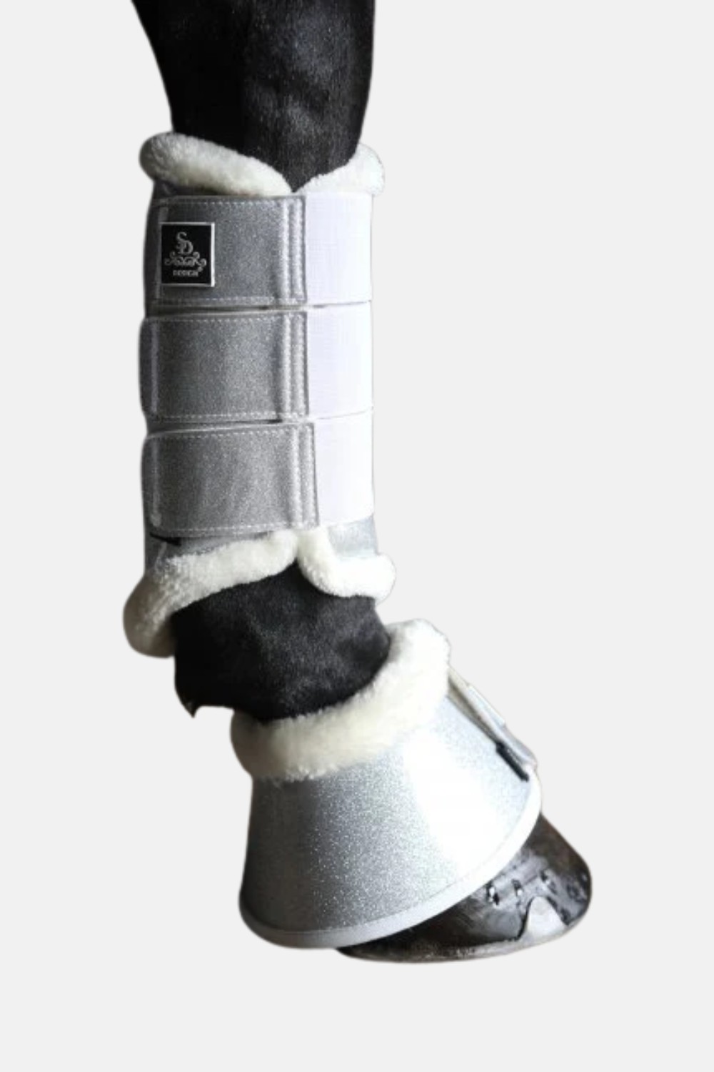 Con las campanas Hollywood Glamorous obtienes un impresionante aspecto brillante y una buena protección para tu caballo. Las  campanas están hechas con la patente de purpurina más hermosa, que brilla como mil diamantes. Con pelo de cordero artificial súper suave en la parte superior de las campanas, para asegurarse de que sean suaves y cómodas.