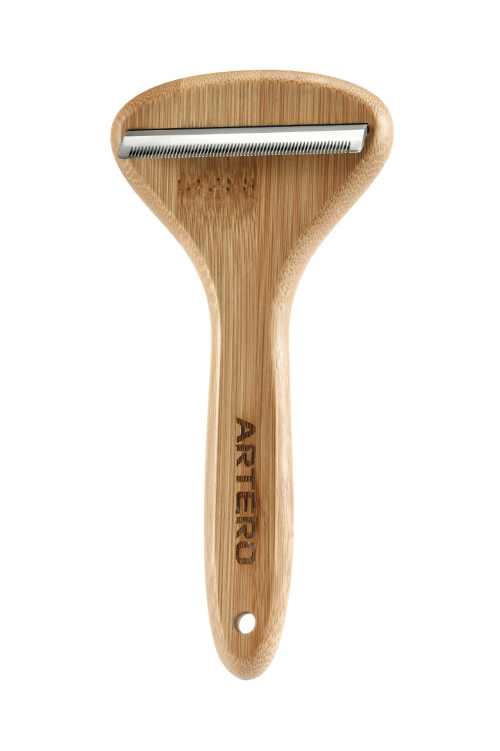 -Doble cuchilla, una con filo liso y otra con micro dentado, para poder retirar de forma eficaz el exceso de pelo del caballo.