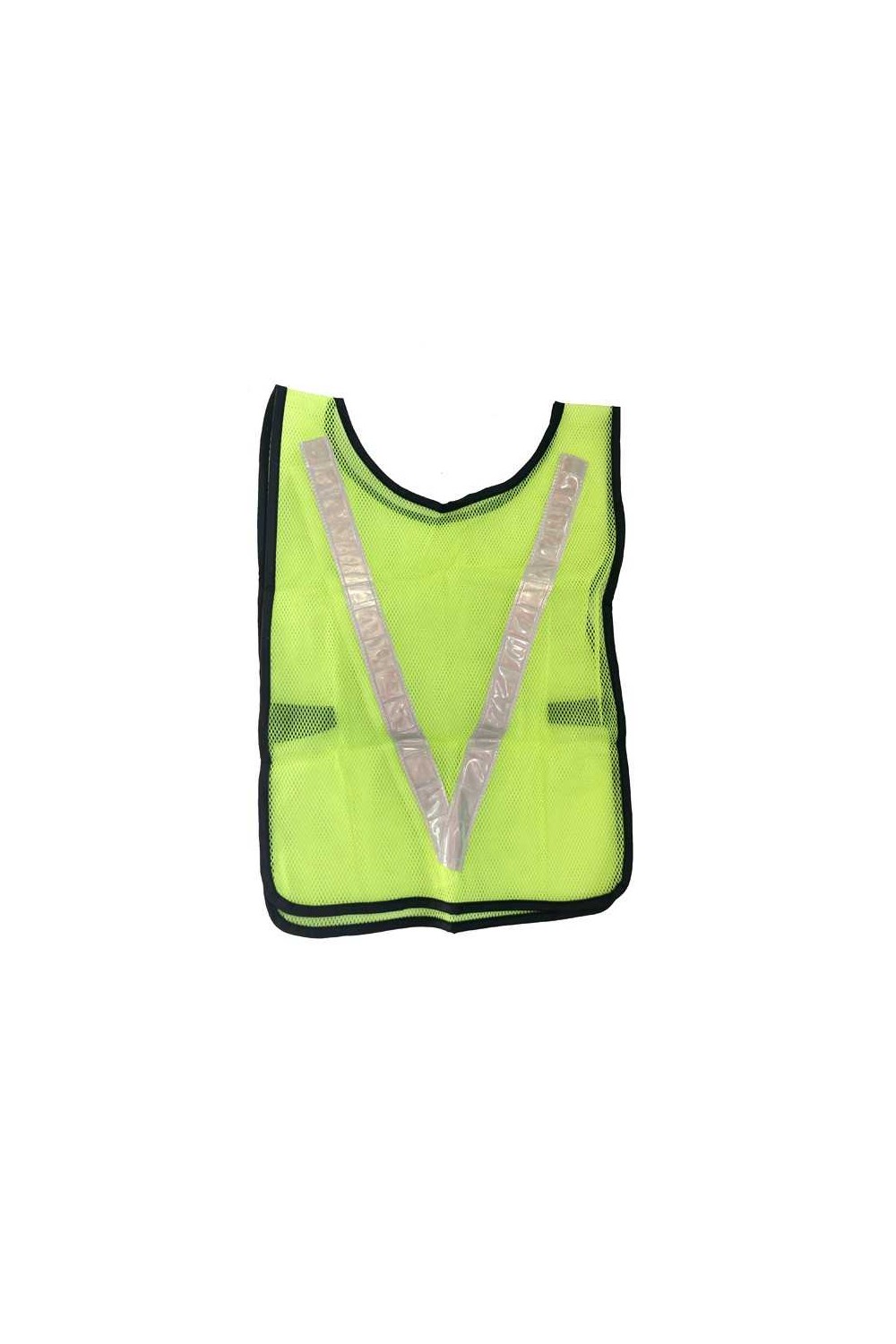 Chaleco fluorescente para jinete. Gracias a sus bandas reflectantes el jinete puede ser visto.