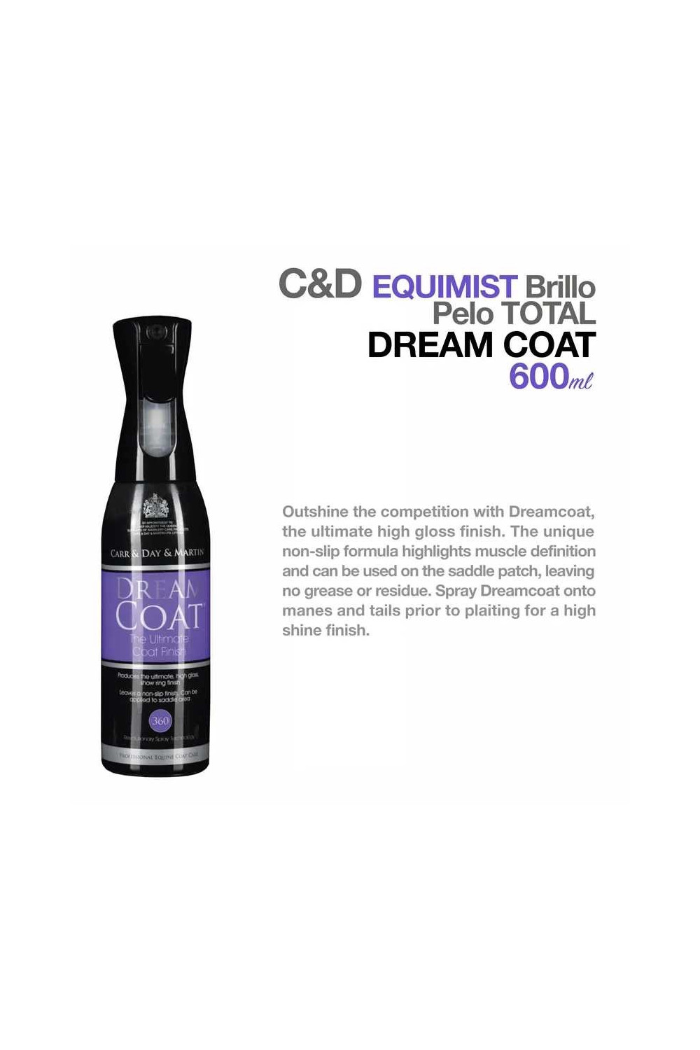C&D Equimist Brillo Pelo Total Dreamcoat Para aportar un brillo inmejorable durante las exhibiciones.Aporta al pelaje un aspecto suave y pulcro, y resalta la definición muscular. No deja residuos resbaladizos y es excelente para el trenzado. APLICACIÓN:Pulverizar ligeramente sobre el pelaje, las crines y la cola, y frotar con un trapo o cepillo.Si se utiliza por primera vez, realizar una prueba cutánea 24 horas antes de usarlo.Formato: 600 ml.