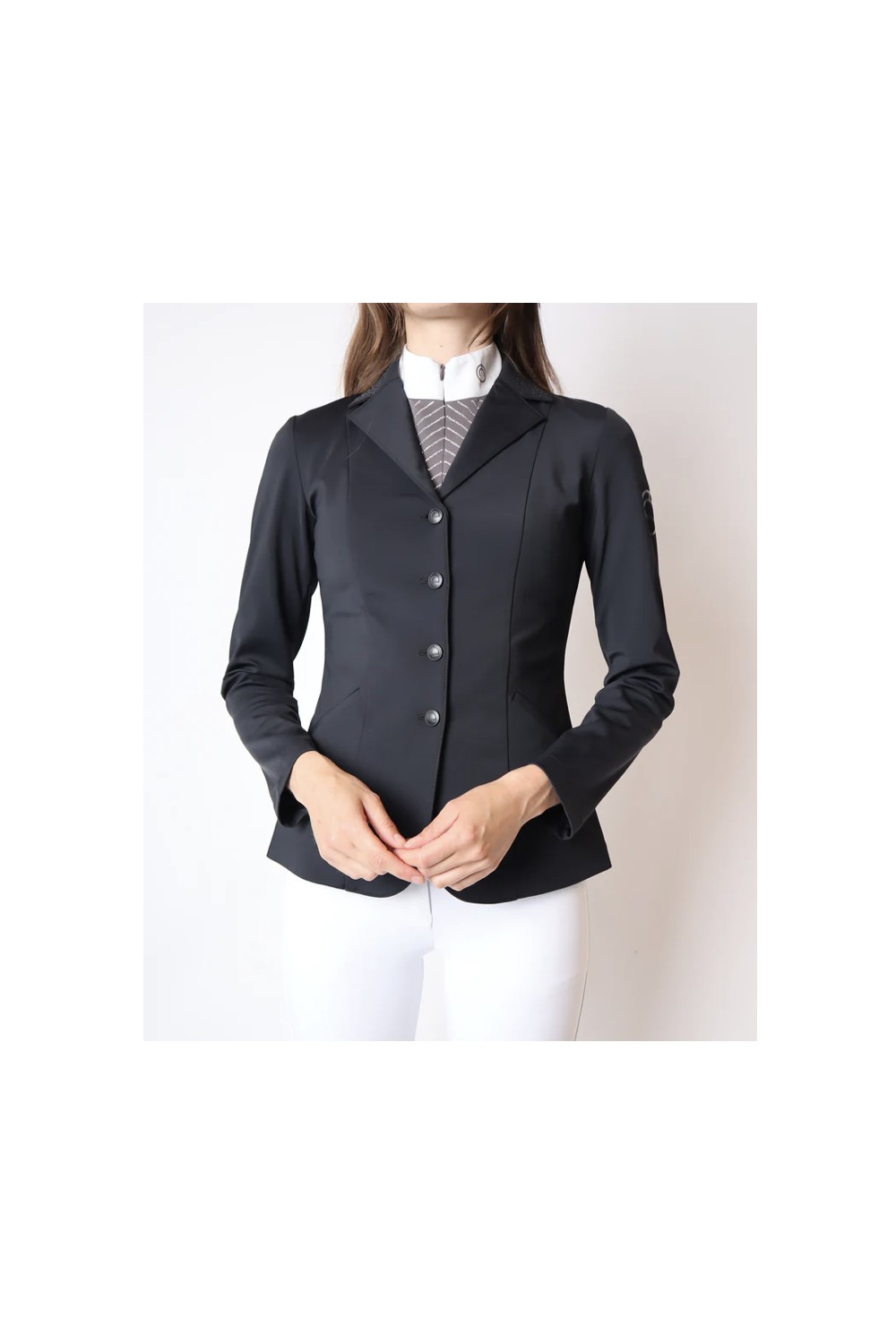 La americana de competición Bonnie está hecha de un tejido softshell muy funcional que siempre te hace sentir la libertad y el bienestar para competir. Hay un forro de malla en la parte del cuerpo y no hay forro en las mangas para aumentar la movilidad al montar. Diseñada en pequeños cristales en el cuello. Los cristales son tono a tono con la tela. Equipada de 2 bolsillos en la chaqueta.