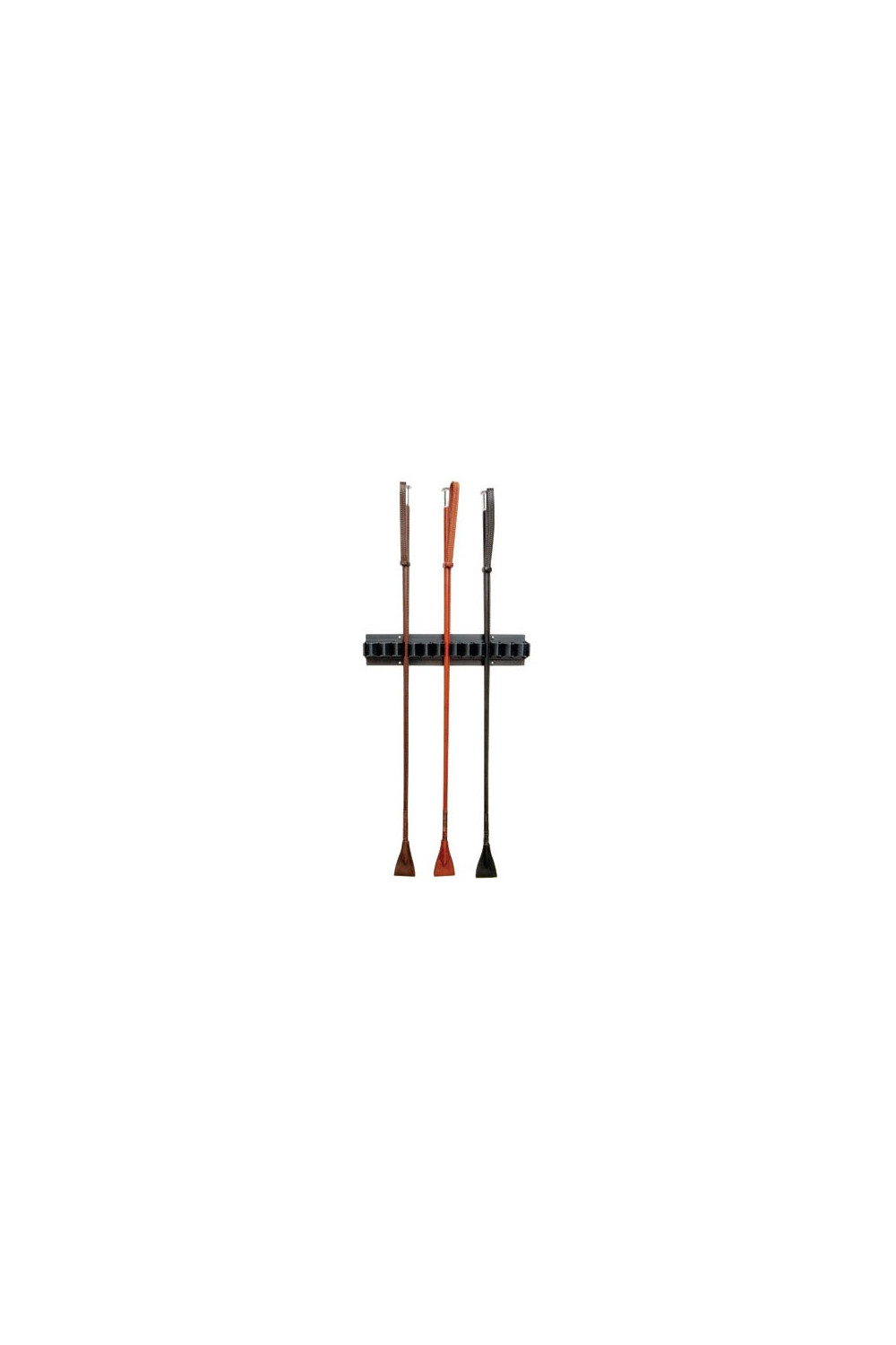 Realizado en plastico muy resistente con capacidad para 11 fustas y un sistema de presión para mantenerlas sujetas.