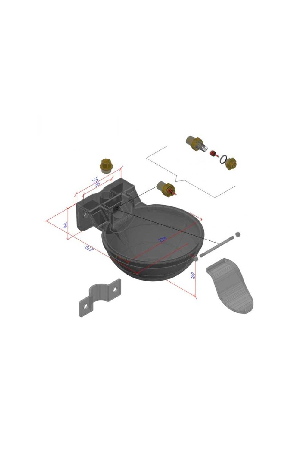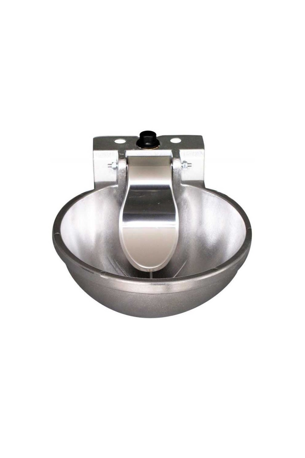 Bebedero para caballos con cazoleta de aluminio y lengí¼eta de acero inoxidable. Toma de agua superior e inferior. Sujeción con 2 tornillos.