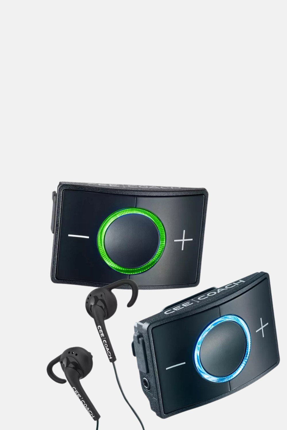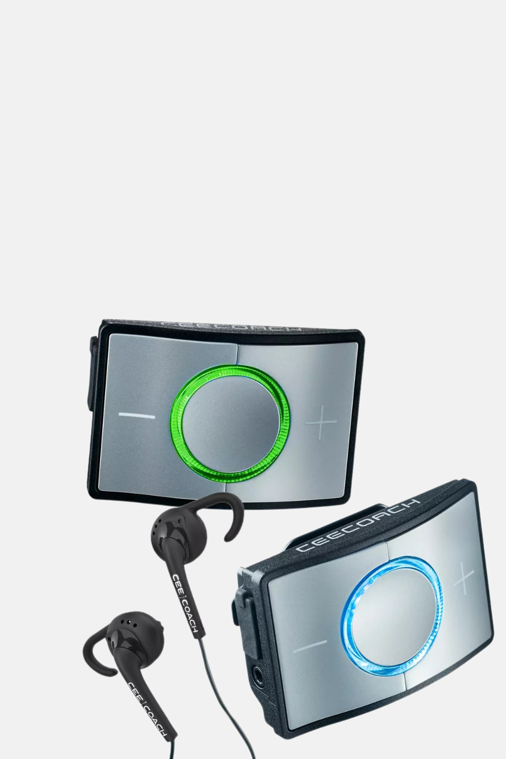 - 2 x CEECOACH 1 - 2 soportes para clips - 2 x auriculares estéreo con logo CEECOACH - 2 cables de carga USB - 2 x guía de inicio rápido |