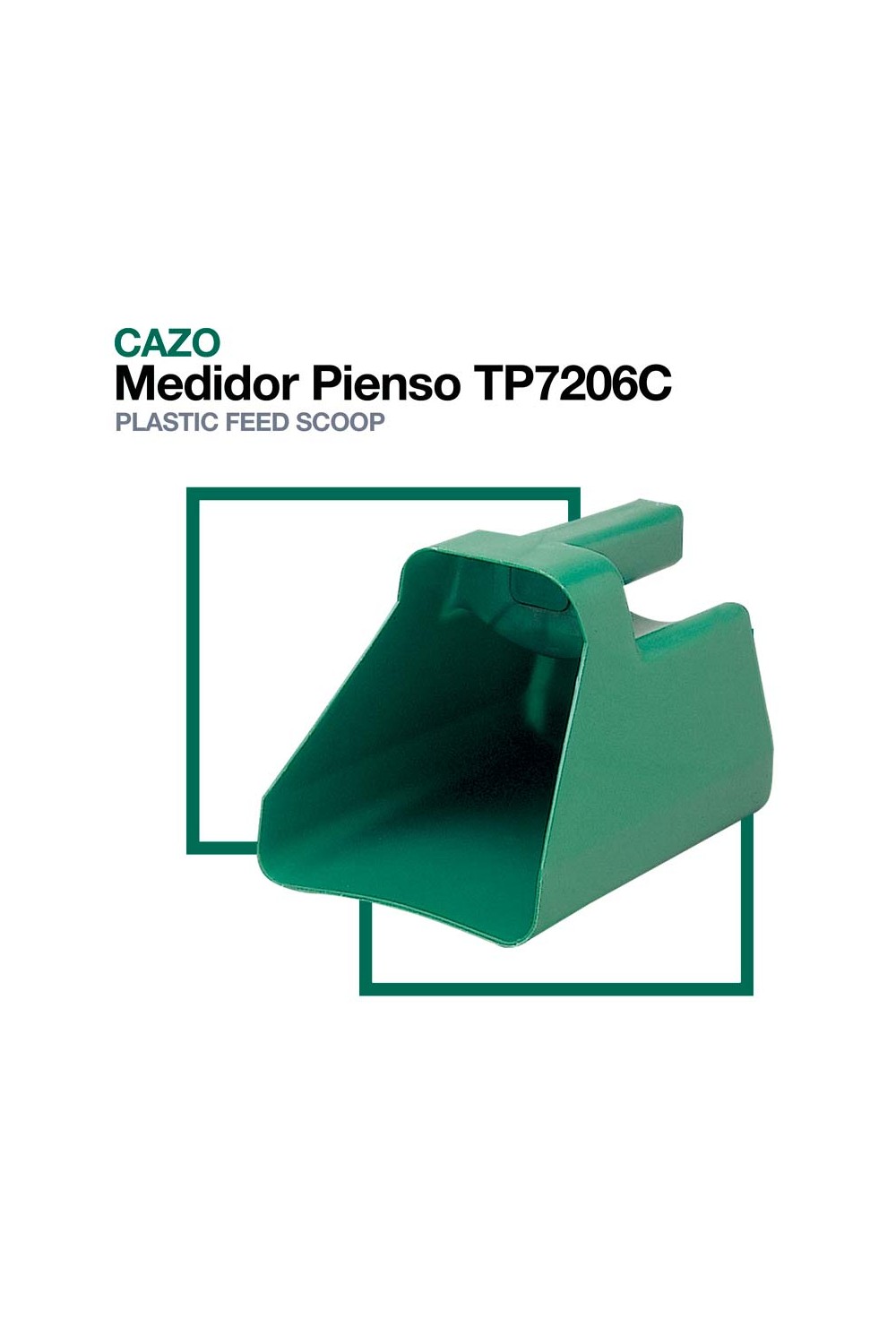 Cazo medidor de pienso de 21.5 cm. de profundidad 14.5 cm. de ancho y 14.5 cm. de alto.