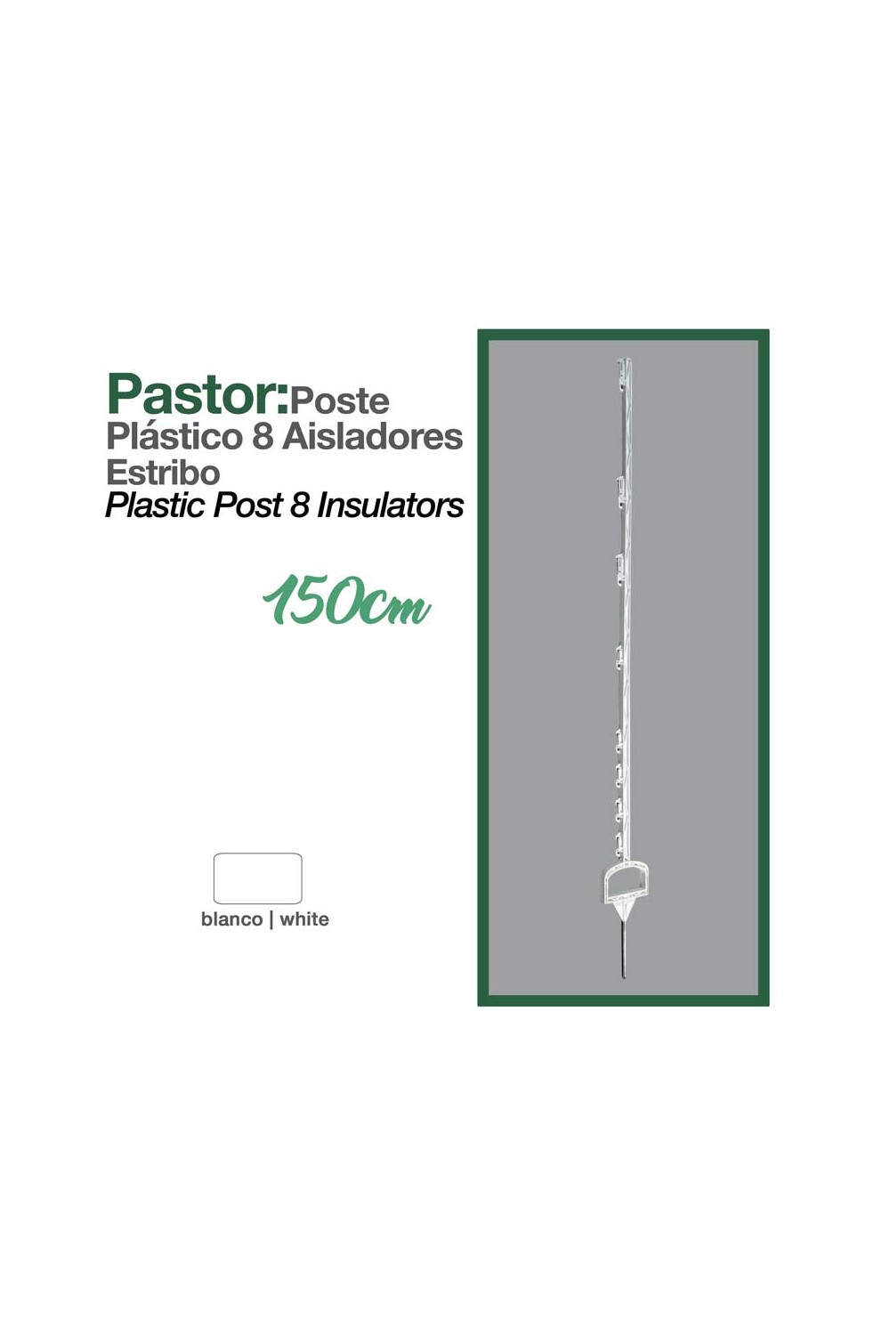 PASTOR: POSTE PLÁSTICO 8 AISLADORES ESTRIBO 150cm