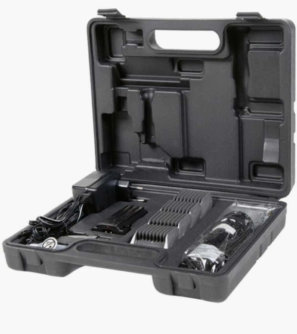 Esquiladora con batería, 12 Watt, 0,3 kg con luz incluida. Viene en un maletín que incluye pincel de limpieza. La batería es recargable y tiene una duración de 60 - 90 min aprox. El tiempo de carga de la batería es de unas 2 - 3 horas. Es adaptables a cuchillas de 3,6,9 y 12mm. Ideal para esquilar caballos y perros.