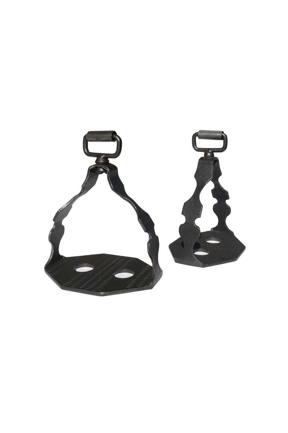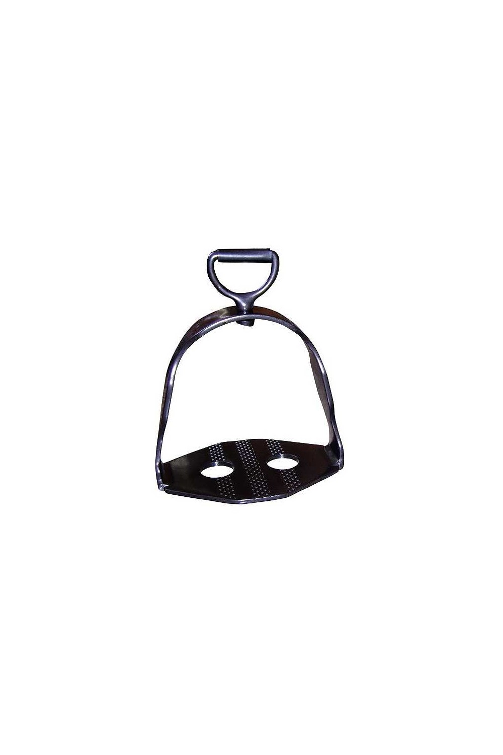 Estribo de estilo español para sillas de doma y potreras. Fabricados en España. Anilla para el paso de la ación giratoria y con rodillo.