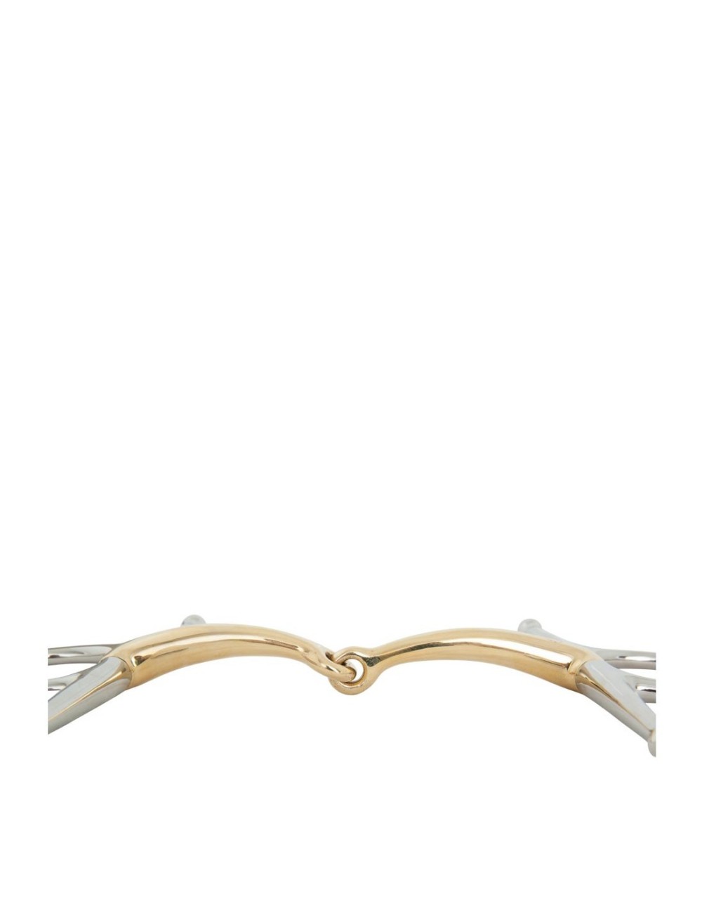 Filete de palillos de una sola articulación de alta calidad. Diseñado con anillas giratorias de acero inoxidable. Consta de un 89% de cobre, un 7% de aluminio, un 3% de hierro y un 1% de zinc. Totalmente anatómico gracias a su forma que esta hecha para la boca del caballo, lo que le permite una distribución suave y de precisión. Fomenta el proceso de masticación y la producción de saliva por lo tanto le permite una agradable sensación.