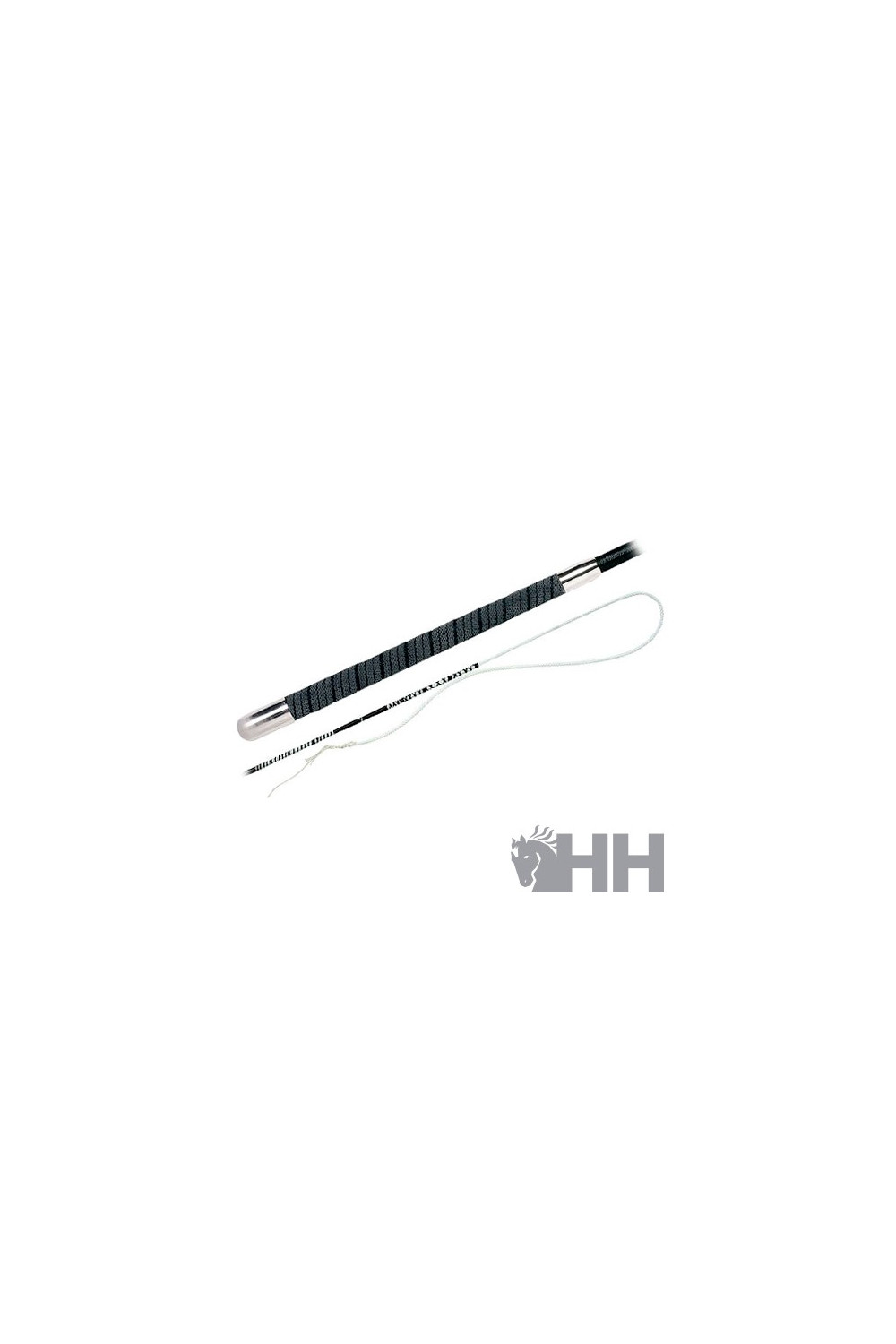 Cuerpo forrado de nylon, empuñadura de material sintético con mucho agarre y tralla de nylon.