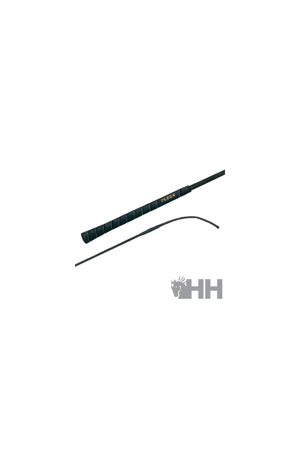 Fusta con tralla, el cuerpo forrado de nylon y la empuñadura con el agarre registrado FLECK.