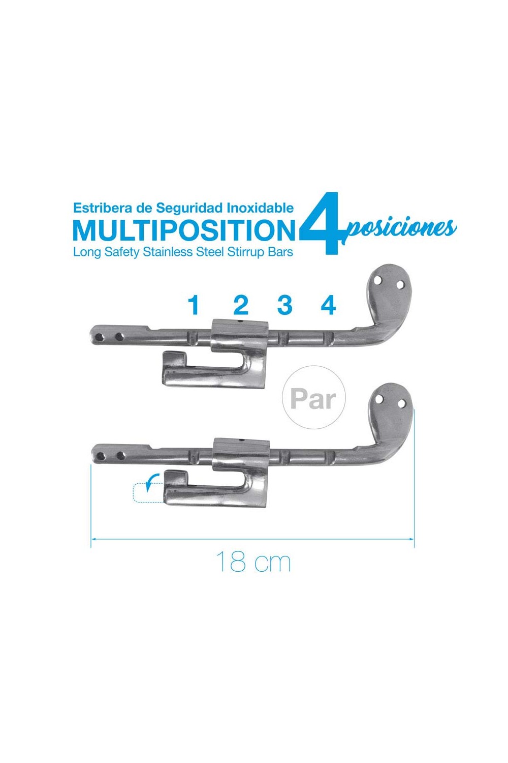 Estribera inoxidable de seguridad multiposición, con 4 posiciones para las aciones de estribo.
