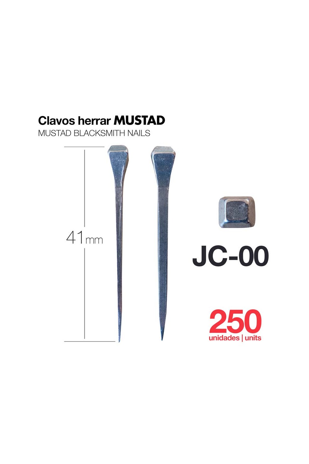 * Modelo JC 00: Largo de 41 mm. * Modelo JC 0: Largo de 45 mm. * Modelo JC 1: Largo de 49 mm. * Modelo JC 2: Largo de 53 mm. * Modelo JC 3: Largo de 57 mm. * Modelo JC 4: Largo de 61 mm.